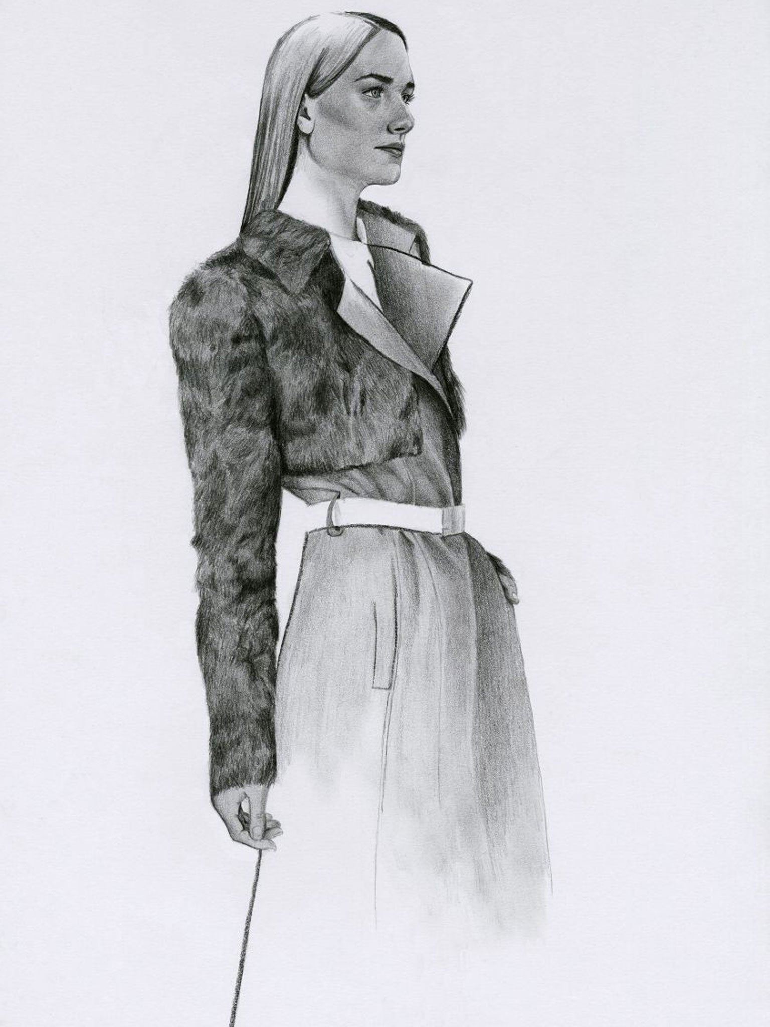The collection's interpretation of those frills and furbelows isn't literal. Which means, luckily, no corsets, coronets or coronation robes. It's about subtle – dare we say modern – nods to the monarchy. And a great line in names. The Parade trench coat is inspired by the overcoats worn by guardsmen at the Tower of London, and regal ermine trims are the basis for the 3D spots found on the Alexandra angora jumpers and scarves, named after the elegant Edwardian Queen Consort. No prizes for guessing that the Busby bag filches its fuzziness from the famous bearskin hats.