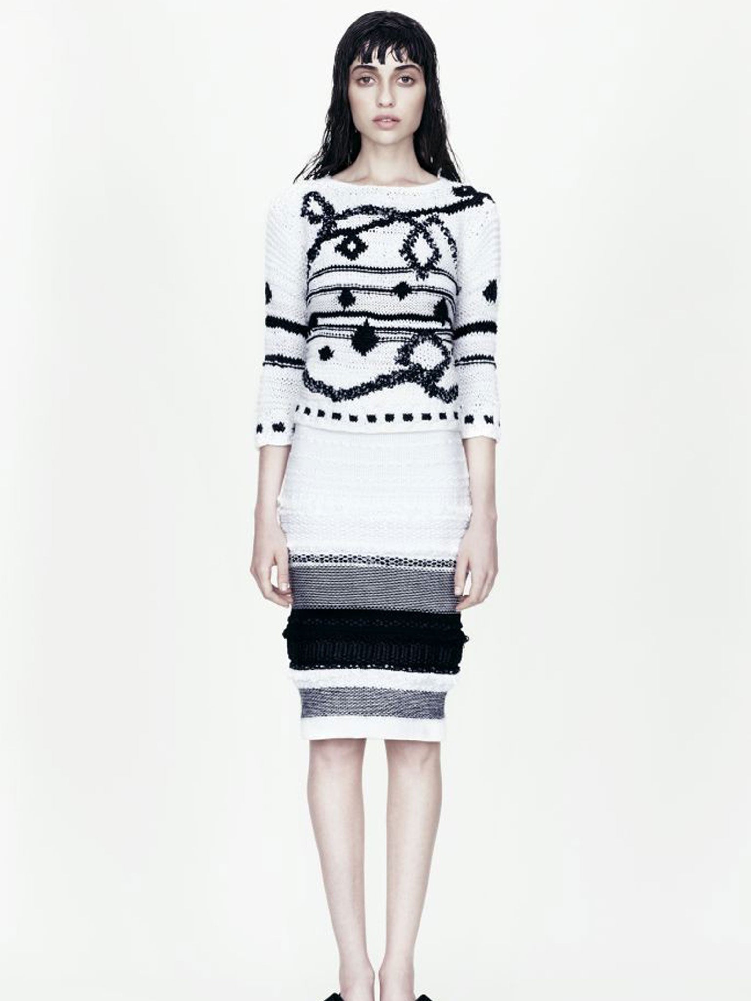 And as necessity is the mother of invention, combining their varying levels of skills – from Bryan and McCreery, who first picked up needles and yarn as children, to Bates, who doesn't knit – the trio embrace the limitations of the medium. “Sometimes actually knowing less about the techniques can help because it makes us question what we want as a finished garment. We like tradition, it is the foundation of our brand, but then we have fun messing around with it – like a collage almost.