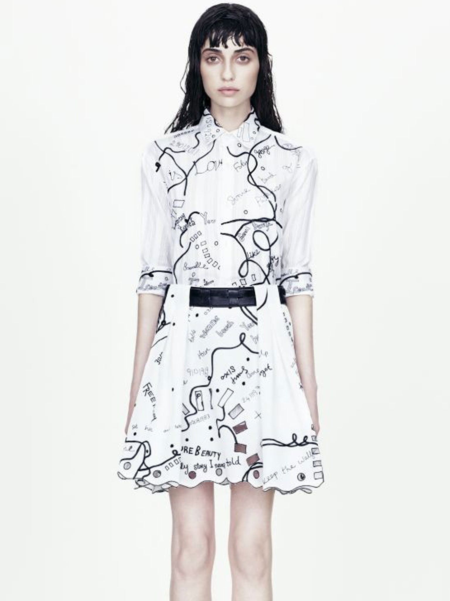 Long's monochrome collection for spring/summer was notable for his use of embroidered graffiti, threading his collection with extremely personal notes: odes to his family, his seamstresses and mentor Lulu Kennedy; Patti Smith words and PJ Harvey lyrics. But this was a happy accident: “I did some knit drawing that I wanted to have writing on,” says Long. “But that's really difficult and expensive. Sometimes I do draw something and it can't be done. So it has to turn into embroidery or something.