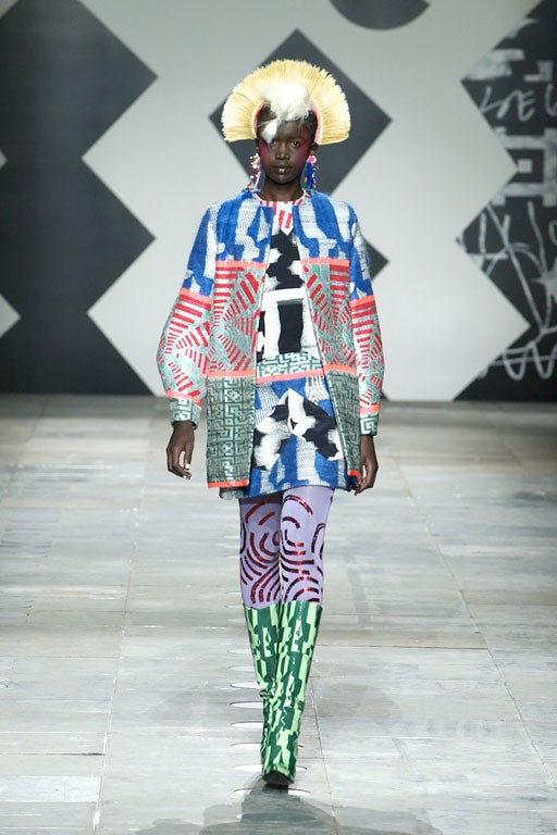A similarly anarchic vocabulary was central to Louise Gray's finest show to date, from the models' sky-high Mohicans and millinery courtesy of Nasir Mazhar to the fact that more than a few garments looked like vintage clothing torn apart at the seams and put back together again. Except, of course, that it was all made from scratch and few of us have such technical expertise. What looked like ribbon appliquéd on to clothes, for example, was in fact woven into jacquard.
