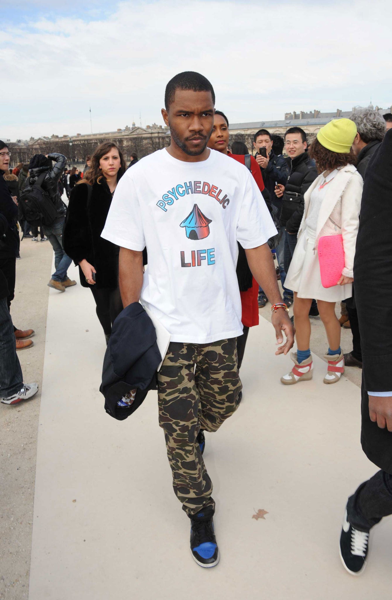 “I don’t wear women’s clothes,” was Frank Ocean’s response to The Hollywood Reporter’s querying whether Frank might take a leaf out of Kanye’s Céline-wearing book. But that didn’t stop the rapper attending a whole host of womenswear shows at Paris Fashion Week – Dior, Givenchy, Margiela and Chanel included. He wore sweaters and trainers, natch, but he looked pretty fly with it.