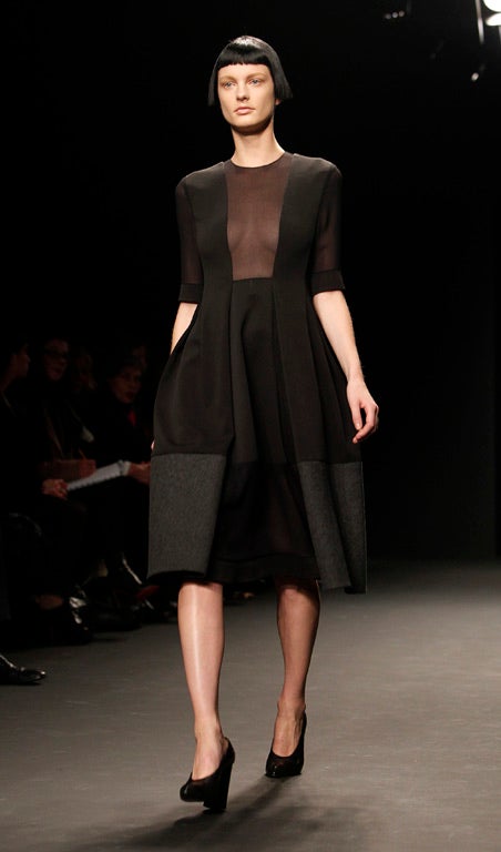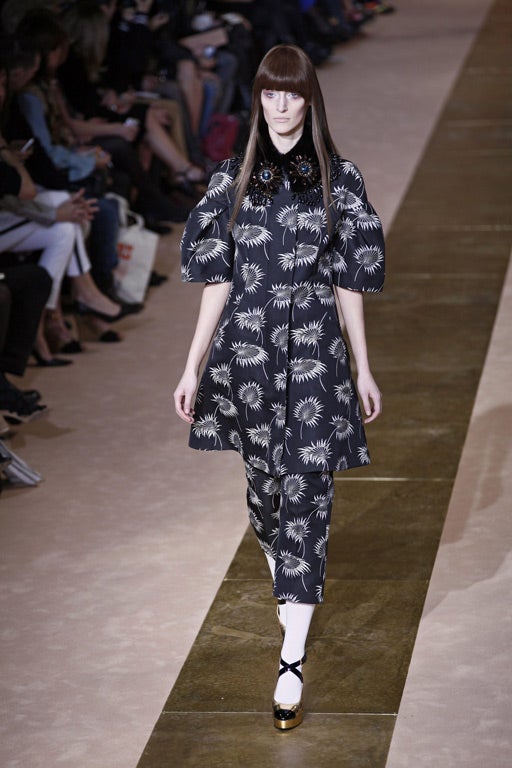 The baby fringe (which ends just before the middle of the forehead and is not to be confused with the longer Bettie Page curled fringe) has by now been seen on the Calvin Klein, Marni and Versace catwalks (Mara sat frontrow at the former). The high fringe and long straightened hair look that Guido Palau created at Versace, looked especially bewitching,particularly when teamed with the collection's dark and gothic pieces (another major trend for the new season).