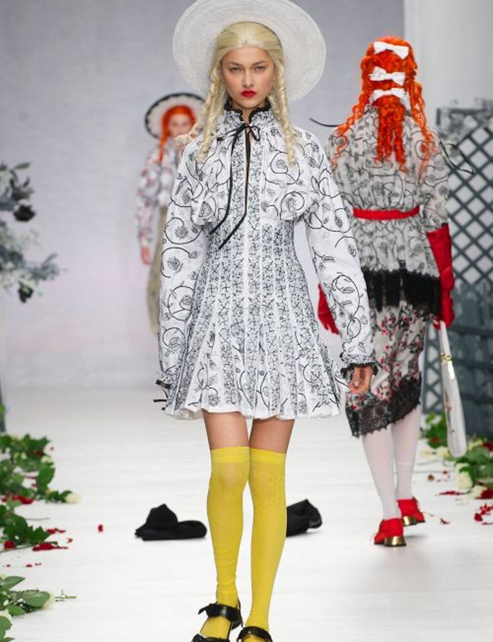 Mary Katrantzou is another “printer” who shows you much more than mere print. Her kick is maximalism – it's impossible not to see the frilled and furbellowed Eighties extravagance of Christian Lacroix in her brief evening dresses, embroidered by French couture house Lesage. But unlike Lacroix, Katrantzou has built up a formidable business. Women want to wear these clothes. There's something fascinating about the objectification of women, by a woman. Katrantzou was inspired by shoes and turned her models into giant walking embodiments of the footwear, rife for fetishism. And women are buying into this, turning themselves into ostentatious objects of desire.