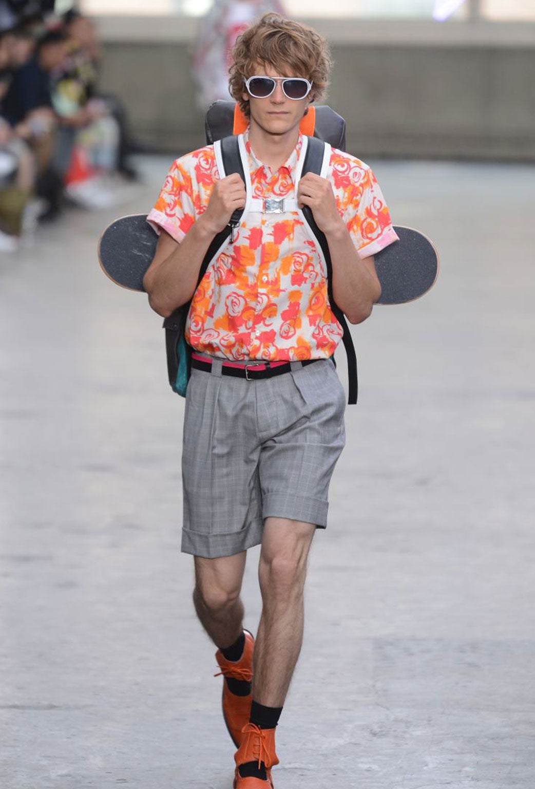 After all, summer staples such as ice-cream colours and white look great when the sun is blazing, but are harder to pull off right now. That’s why the influx of neon as a colourful summer trend is actually something of a relief – Day-Glo shades add a bit of sunshine to your wardrobe when the real thing can’t be relied upon. There was neon on the catwalk for women and men for the new season – Simone Rocha, Versus and Sister by Sibling excelled for the former, while the latter should look to E Tautz, Topman Design and Agi & Sam for guidance.