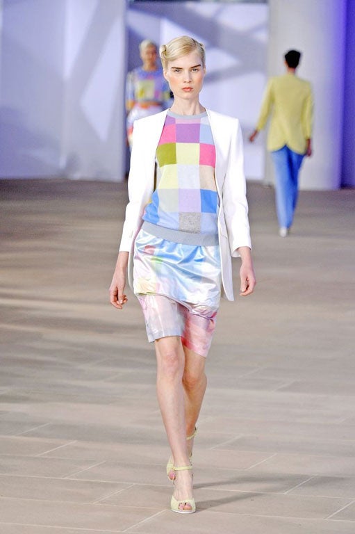 But if this sounds at all fusty, perhaps it's more apt to describe their clothes as eminently wearable: Preen is a notoriously flattering label. It makes you feel like you can pull any look off, thanks to Thornton's drapery and Bregazzi's razor-sharp pattern-cutting. It's pragmatic and casual, while classically elegant and glamorous. American sportswear influences jostle with rigid Victorian corsetry and tailoring to create an idiosyncratic and accessible, modern vision of femininity that consistently marries pretty with poise. One of the label's most famous pieces is a bandage-style "power dress", redolent of the Eighties "King of Cling" Hervé Léger but re-imagined at a time when cling was really not the thing. It has become a staple in the collection but not one that either Thornton or Bregazzi are content to leave to stagnate.