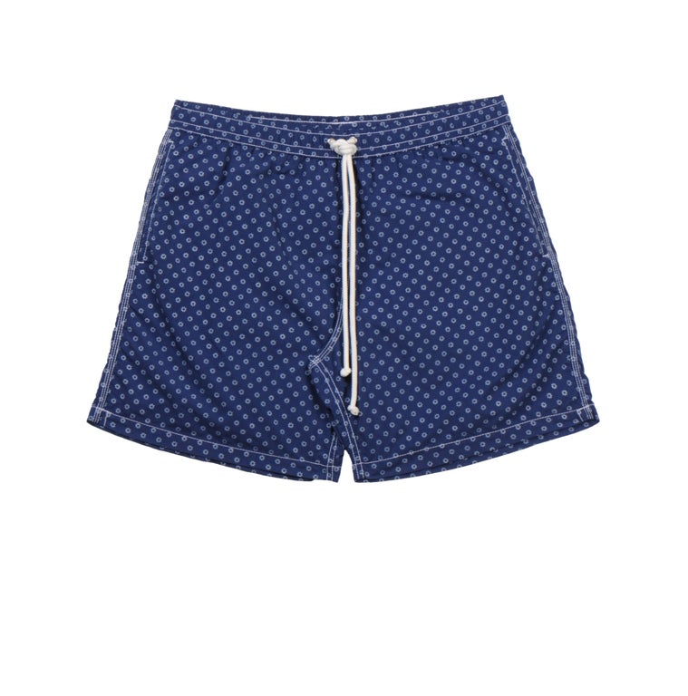 This Paris-based clothing company is a well-kept secret. Make a splash in these tastefully cut blue swimmers. The tiny floral design gives them a sophisticated edge.