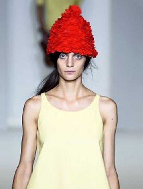 Those brave enough to wear the by now iconic Prada turban and the Marc Jacobs cloche from last season will no doubt be interested to discover what the new collections have to offer in the head gear department. In Paris, Junya Watanabe chose to balance a small but perfectly formed raffia trilby on top of his models matted and mirrored hair. Over in Italy, meanwhile, Consuelo Castiglioni teamed moomin-esque pointed ruffled and tasselled beanies with her loose-fitting shifts. The latter in particular is a hat aimed squarely at the brave.
