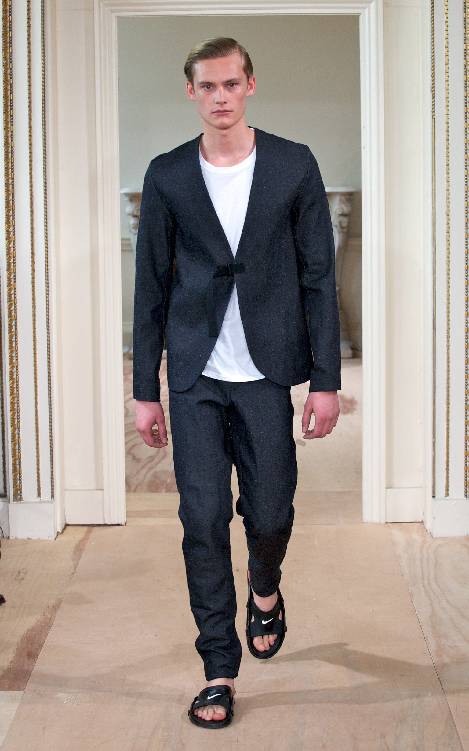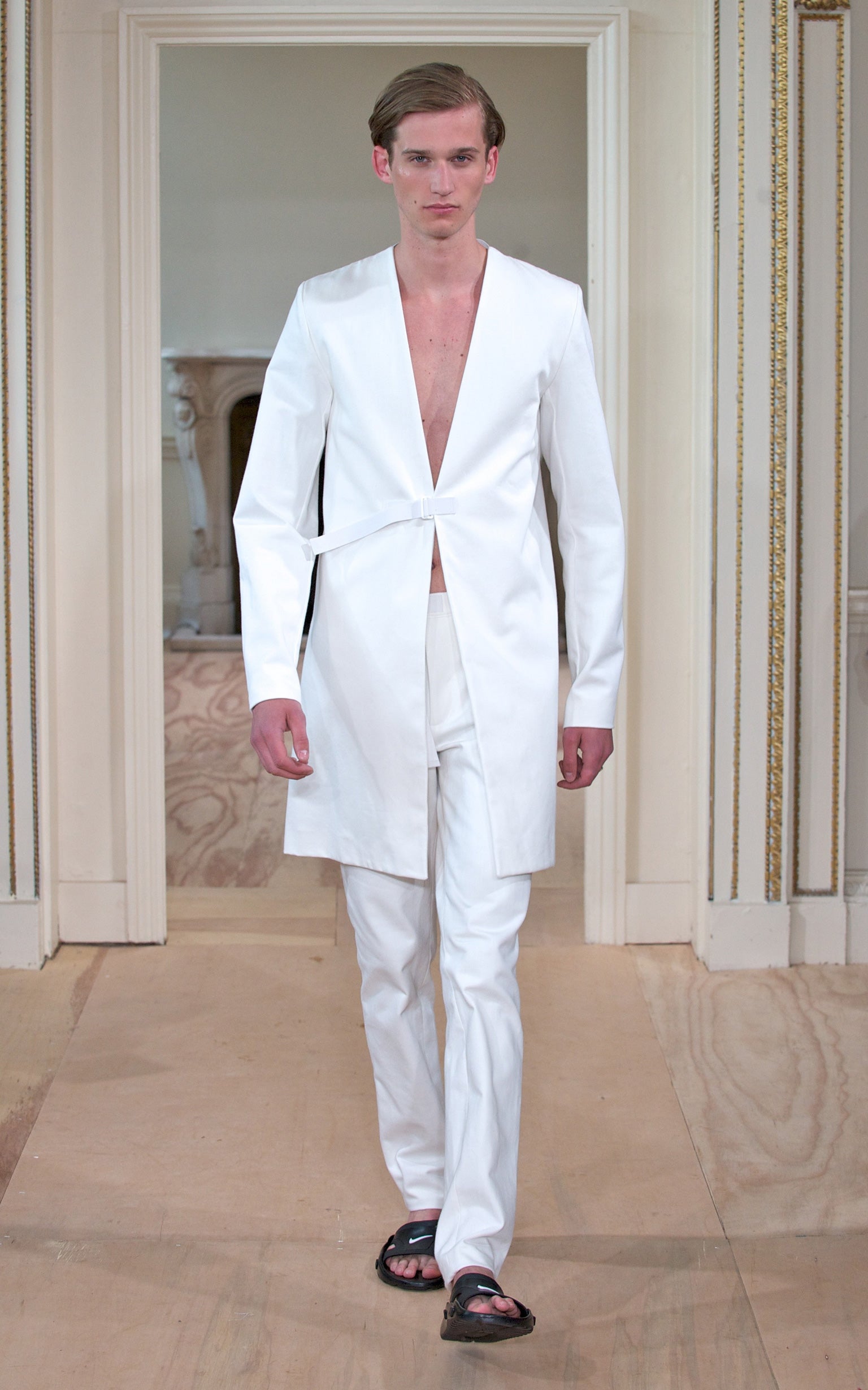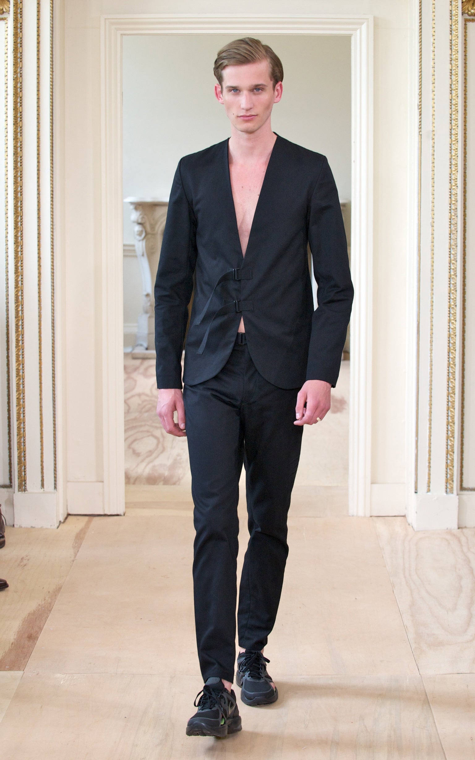 His own aesthetic lies somewhere between the two, fusing elegant tailoring with modern fabrics in a style that explores the physical tendencies of clothing – reducing excess elements and pushing pieces to extremes.