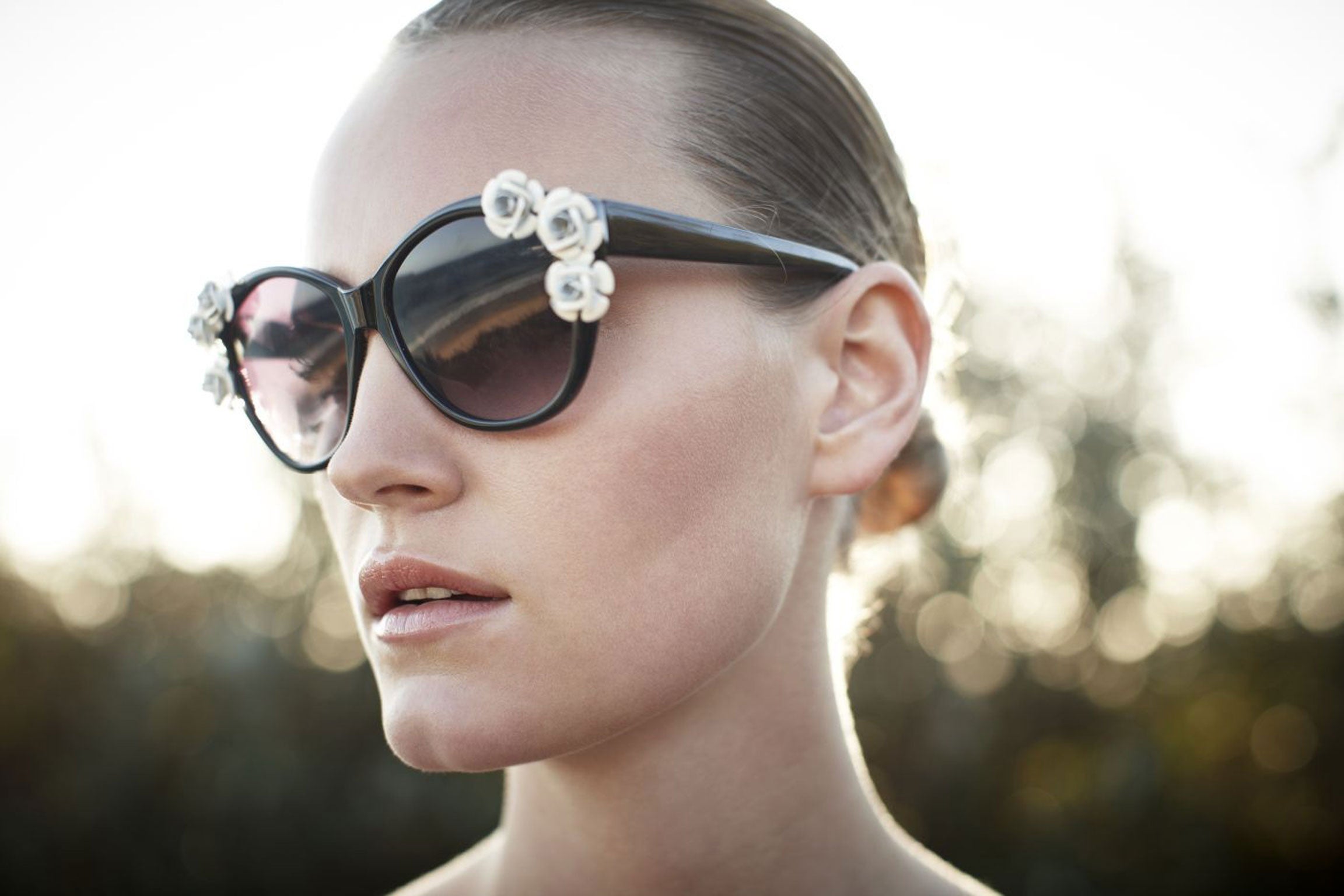Sunglasses aren’t the most traditional of clothing candidates for a bit of bedazzling but following an appearance of floral-embellished numbers at Prada they’ve ap- peared in all manner of forms. Whether you go for floral applique, sequins, diamantes these are shades that make a statement.