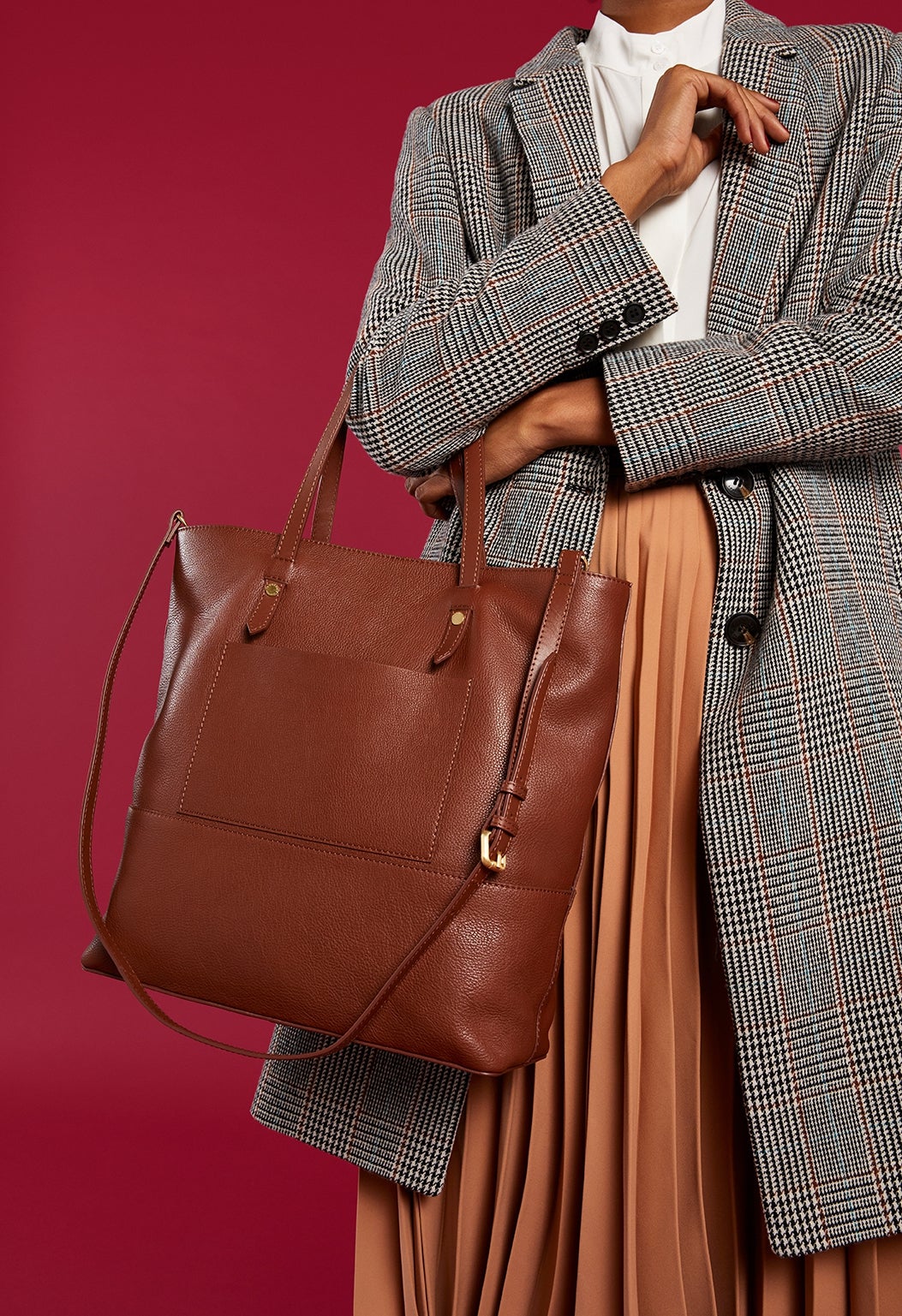 On the retailer’s website, the accessory is described as “generously sized” and made from “subtly grained and soft-to-touch leather”.