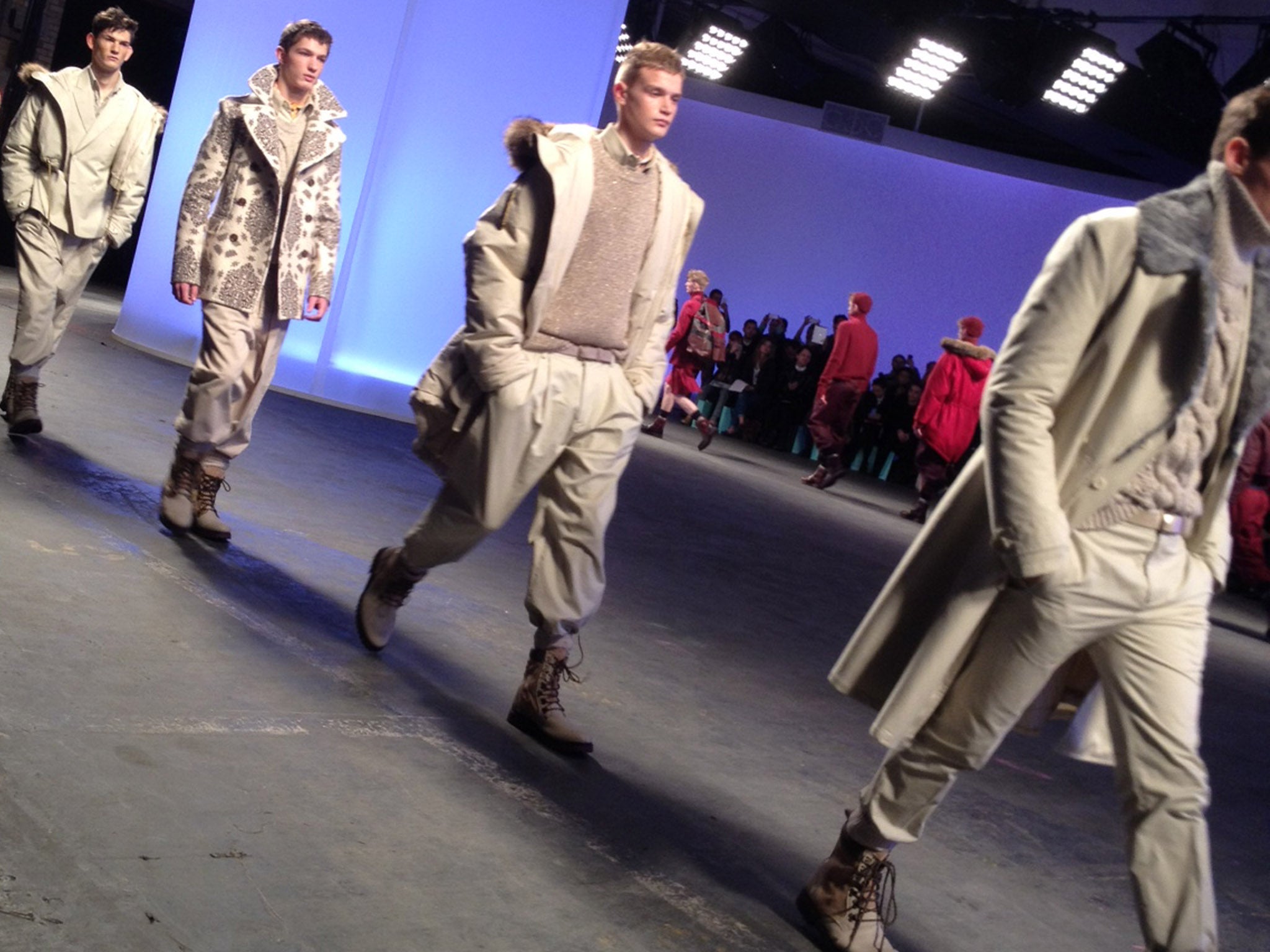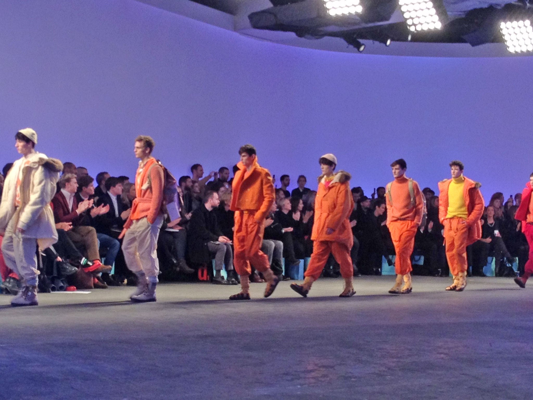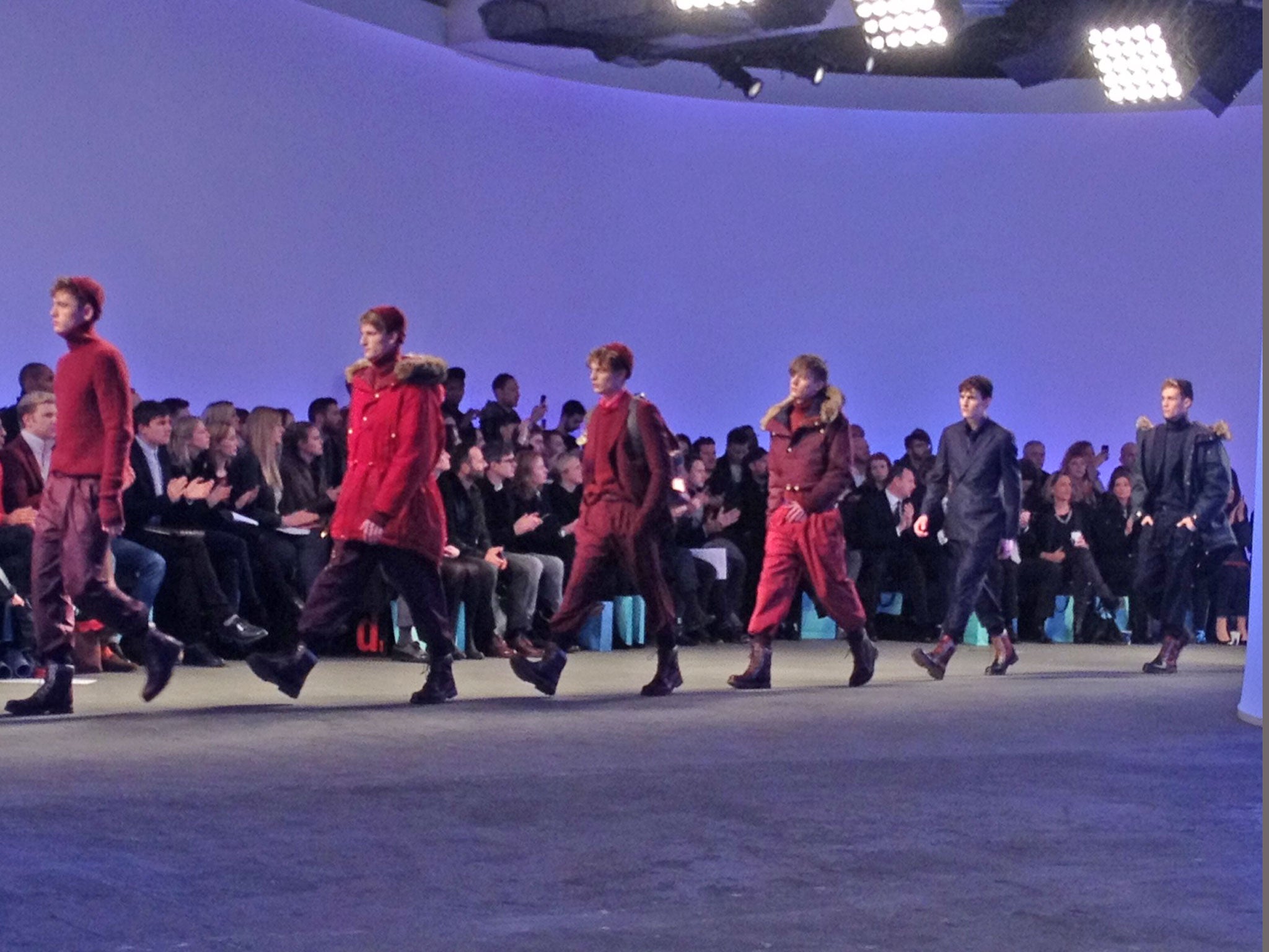 Cropped peacoats and biker jackets, pleat fronted trousers tucked into hiking socks and boots and fish-tail parkas in bold, juicy hues were eminently wearable.