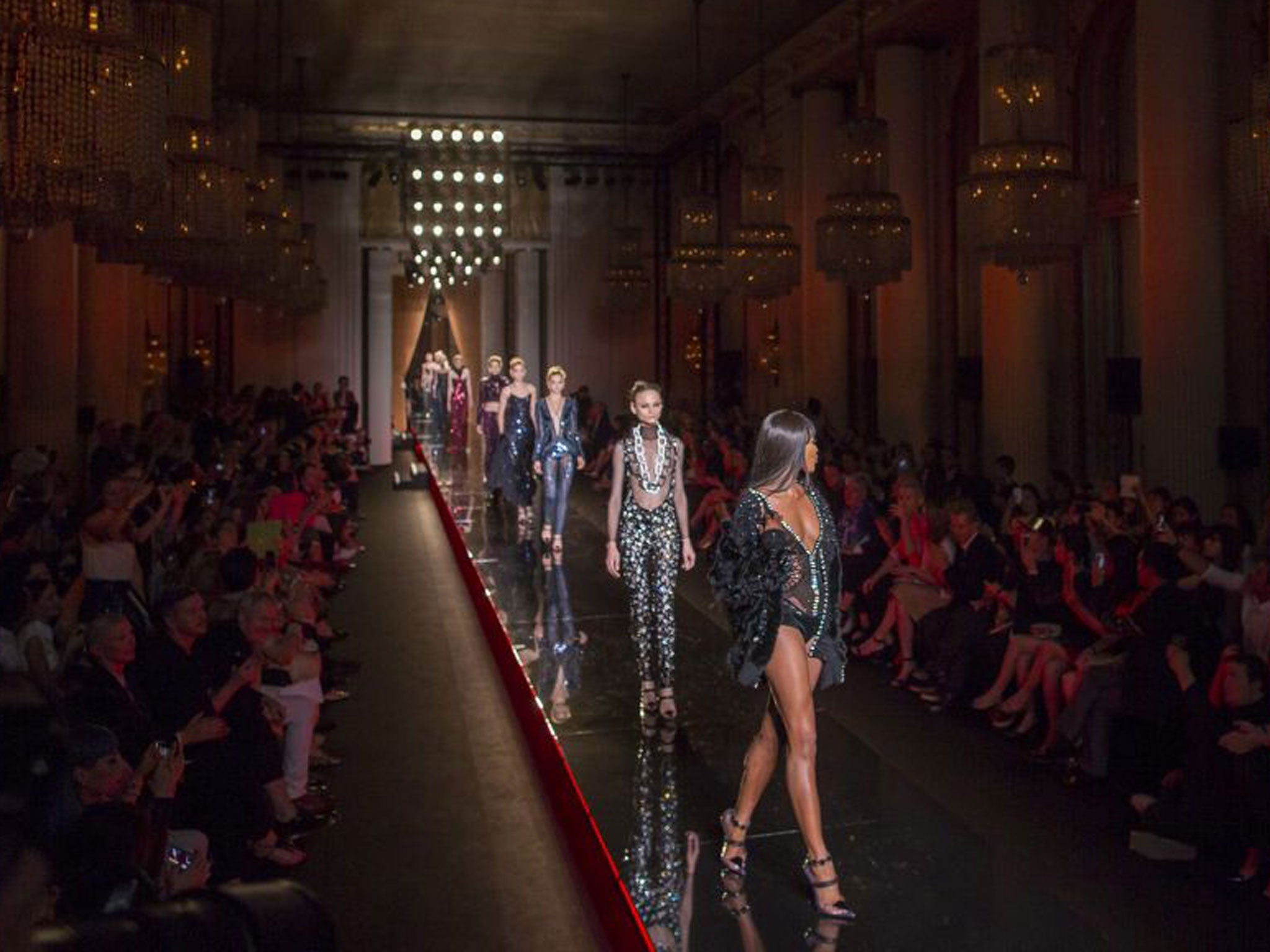 Yes, that's two seasons happening in a single day. One may be womenswear and the other mens - it's still confusing. Couture, however, is a law unto itself: hand-crafted, made-to-measure clothes reserved for the stratospherically rich. For Donatella Versace, those rich come from all over the world: “India, Russia, Brazil,” she stated, before a show opened by none less that Gianni Versace favourite Ms Naomi Campbell, sashaying in a frock so sliced-and-diced it looked like it had lost a fight with a waste disposal unit. That was the collections' leitmotif - slits, slaloming around the body, sometimes fasted with diamanté-studded hook-and-eyes like especially glamorous couture girdles. So, when they appeared on a nip-waisted cashmere coat or slinky knee-length black dress, was it daywear? Donatella blinked, then shrugged. “Who wears couture in the day?” Fair dues.