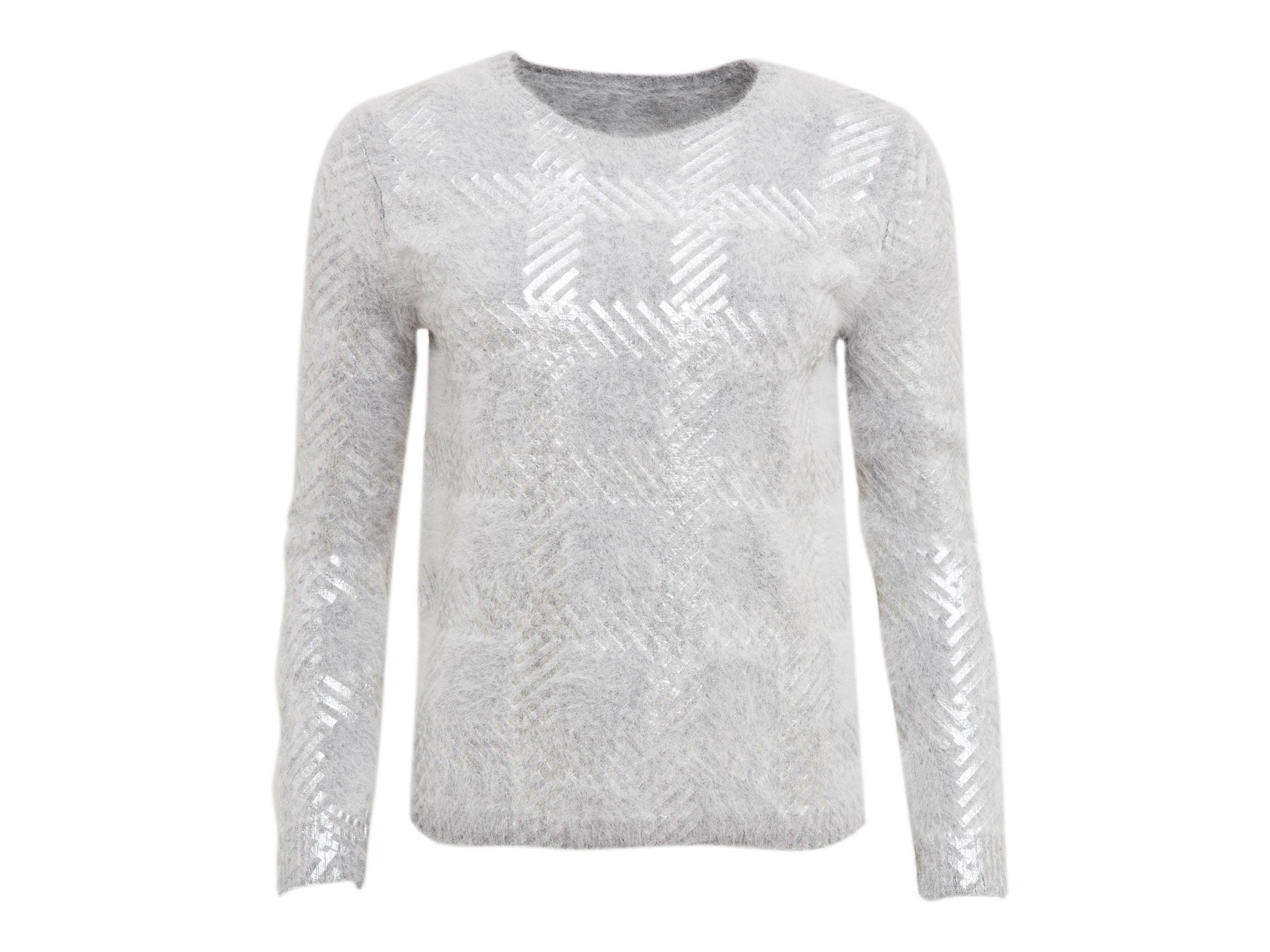 While colour is generally the last thing you’d expect to find in an Alexander Wang show, this season, the designer slotted polarised glass lenses into grey, black and navy mohair knits for a futuristic shimmer, or spun his wool with opalescent sequins to an eye-bending moiré effect.