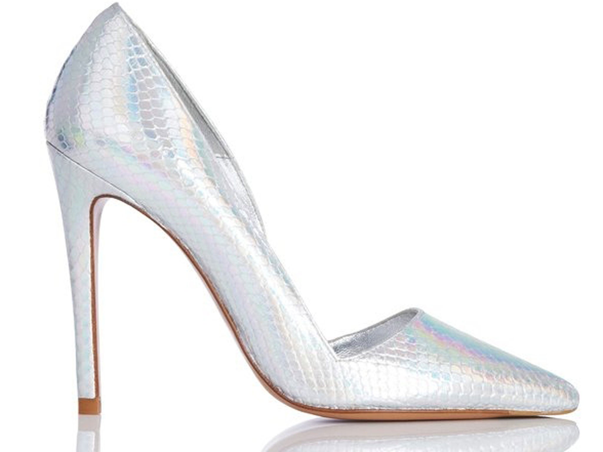The prints at Hugo Boss owed much to the watery traces bleeding from a digitised kaleidoscope, while Anya Hindmarch’s games-themed collection of bags featured kaleidoscopic clutches complete with dizziness-inducing op-art spirals. As for Sophia Webster’s LFW presentation, she showed holographic heels and gladiator boots amid an enchanted forest tableau. Her models’ hair was plaited with rainbow twists like the horns on a bevy of unicorns – and just like the spectral waves of light bouncing off a prism.