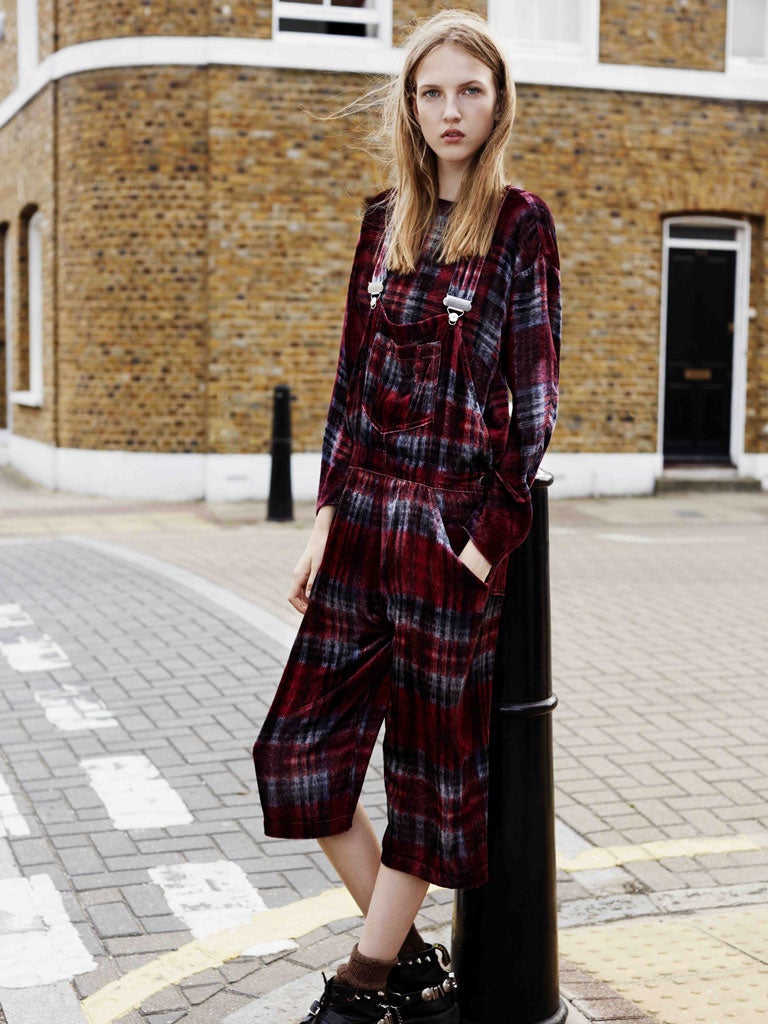 The duo’s design process begins with a print and a colour palette, though “not every print is suitable for both interiors and clothing,” explains Gormley, who has worked with neoprene and brushed wool to create the collection. “When designing clothing we keep the shapes and silhouettes contemporary. We want the clothing to feel modern and clean. This particular collection is inspired by the grungy Dalston-girl aesthetic, as well as evoking a more traditional British mood with the use of tartan and rose print.”