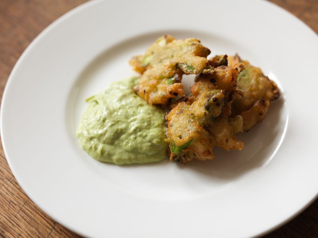 Thinly slice the remaining raw asparagus on the angle and mix in a bowl with the crab, flour and enough water to make a thickish batter and season. Preheat about 8cm of oil to 160-180C in a large, thick-bottomed saucepan or electric deep-fat fryer. Drop dessertspoonfuls of the mixture into the hot fat and stir occasionally with a slotted spoon for a couple of minutes until nicely coloured and crisp; drain on kitchen paper. Scatter with some salt and serve with the dip.