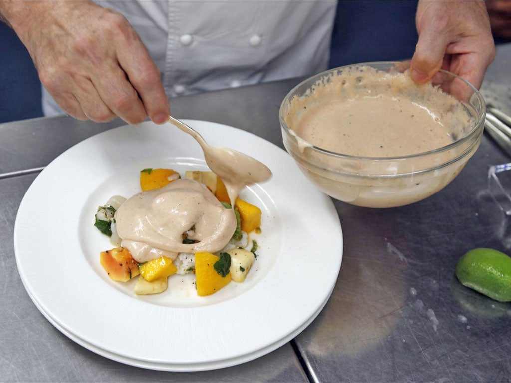 But although Blanc whips up an exotic fruit gratin with guava sabayon to prove his point (and it's true that the sweetness of the coconut milk tastes fantastic against the lime syrup), it is his pumpkin soup made with oat milk, which he recently showed me how to make in his cookery school, that really hit the spot for me, not least because the combination is less predictable.