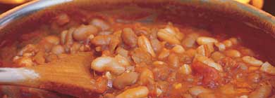 Home-made baked beans can be fun and it's reassuring to know exactly what's going into them. You can use any kind of bean for this, like flageolet, cannellini, borlotti, black eye, or to make it even more interesting use a mixture. The bacon can be replaced with diced-up chorizo so the beans take on a spicier, smoky flavour. If you've got lots of people round you could keep a pot of these hot near the fire.