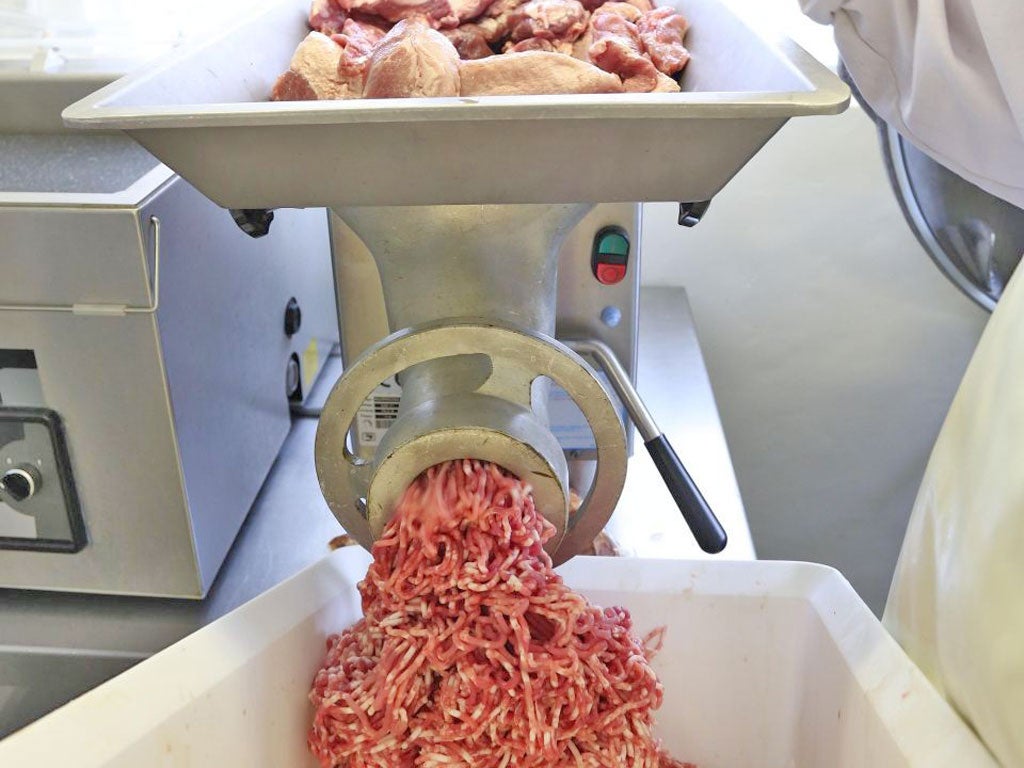 This is a far cry from those huge industrial factories where minimal amounts of pork or beef – scary bits such as noses and udders have been mentioned in shock-horror reports – are bulked up with mechanically recovered chicken scraps, multiple chemicals and loads of water, and forced by machines into artificial casings. At the tiny Native Breeds plant at Lydney Park Farm only pork loin, leg, shoulder and back fat – in an 80:20 meat-to-fat ratio – go into the mix with spices and naturally derived nitrite salts.