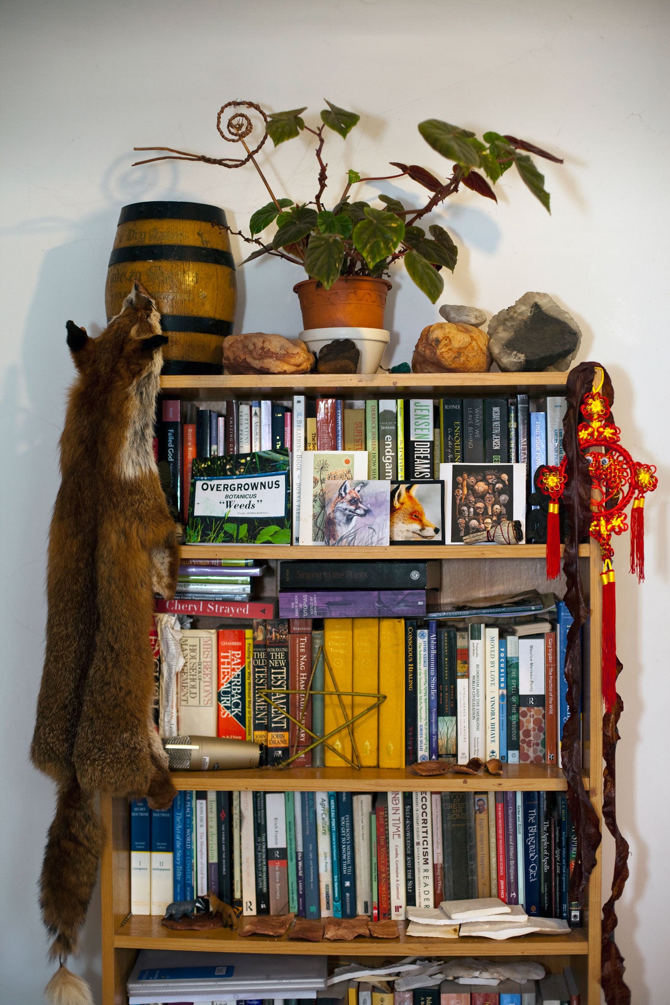 Nor does his interest in wild ingredients stop at the plate. Rather, staunchly opposed to our waste culture as he is, he will crush, boil, bathe and stretch his daily harvest to unleash its full potential, as becomes clear from a visit to his bungalow in the Kent village of Chartham. A cramped converted garage, it is also a cornucopia of curios – among them a badger hide, stretched out on a frame and waiting to form the top of a traditional Irish bodhran drum; pieces of mushroom paper written on with mushroom ink; and a strip of shimmering brown material dangling from a bookshelf that looks like seaweed but is actually half a fox intestine, set to form part of a traditional gut parka jacket.