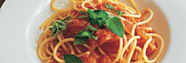 This is the kind of pasta sauce made by Italians at the end of the summer tomato harvest to store in the larder for the cold winter months. Recipes vary from household to household and some may contain lots of garlic and herbs while others will be blended like the passata you buy in supermarkets. You only have to look at all those different tins of tomatoes with various herbs, such as basil and oregano, for an idea of what happens to the glut of plum tomatoes in Italy. I'd recommend blanching the tomatoes before cooking - otherwise you end up with lots of chewy bits of skin in your sauce.