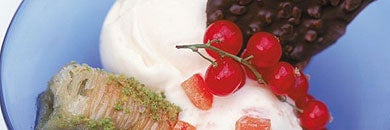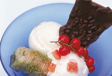 You can serve this ice-cream in various ways or just on its own. It would go really well with a fruit salad of, say, mangoes and papaya tossed with chopped, preserved stem ginger and its syrup; a bowl of fresh strawberries or raspberries; or even make it into a kind of Turkish knickerbocker glory with some cream or yoghurt and some crunched-up baklavas.