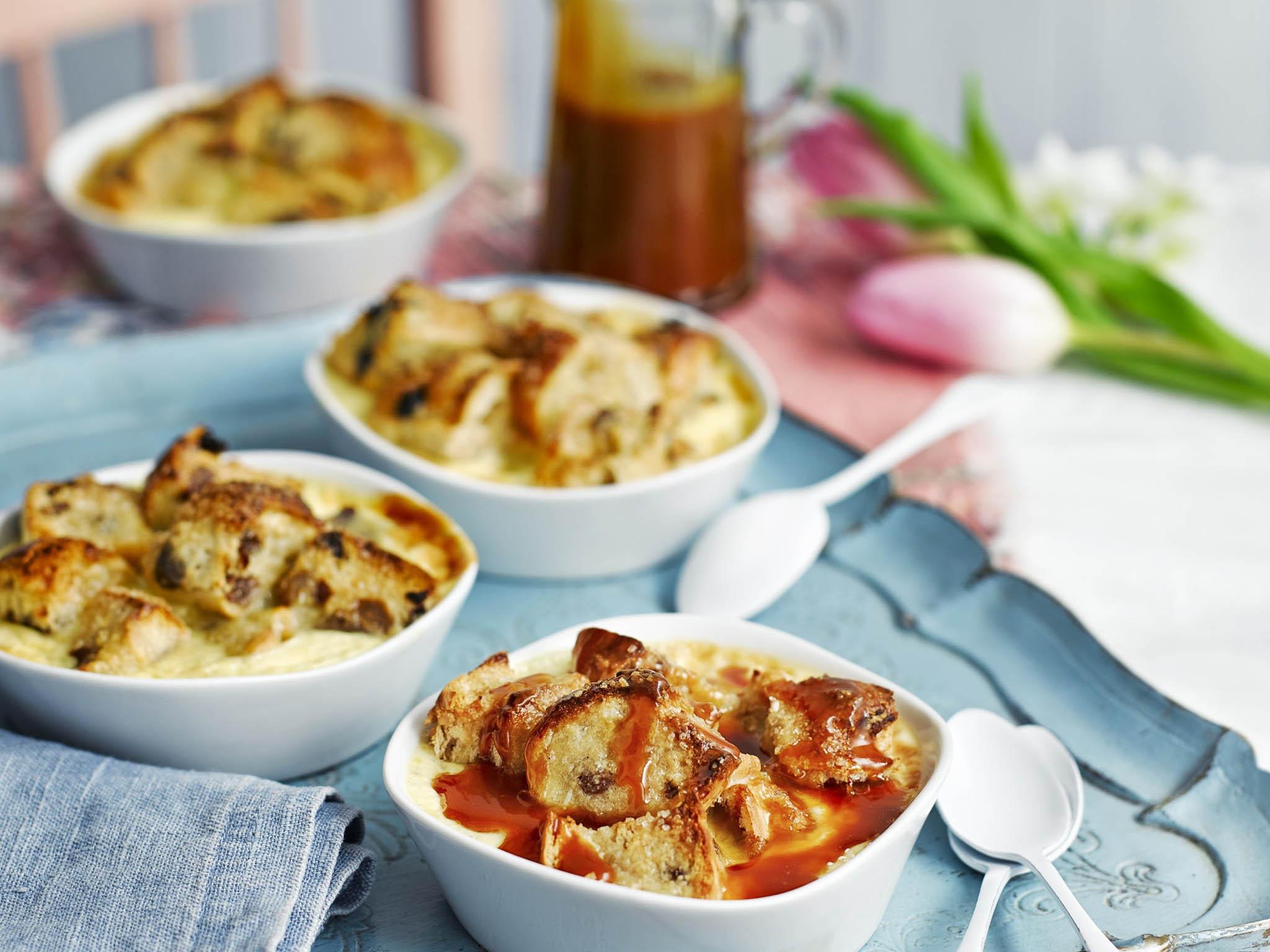 Make use of the shop bought staples and turn leftover hot cross buns into a rich and delicious version of the classic bread and butter pudding or add spring time colour with rose petals and pistachios for something a little more grown up.
