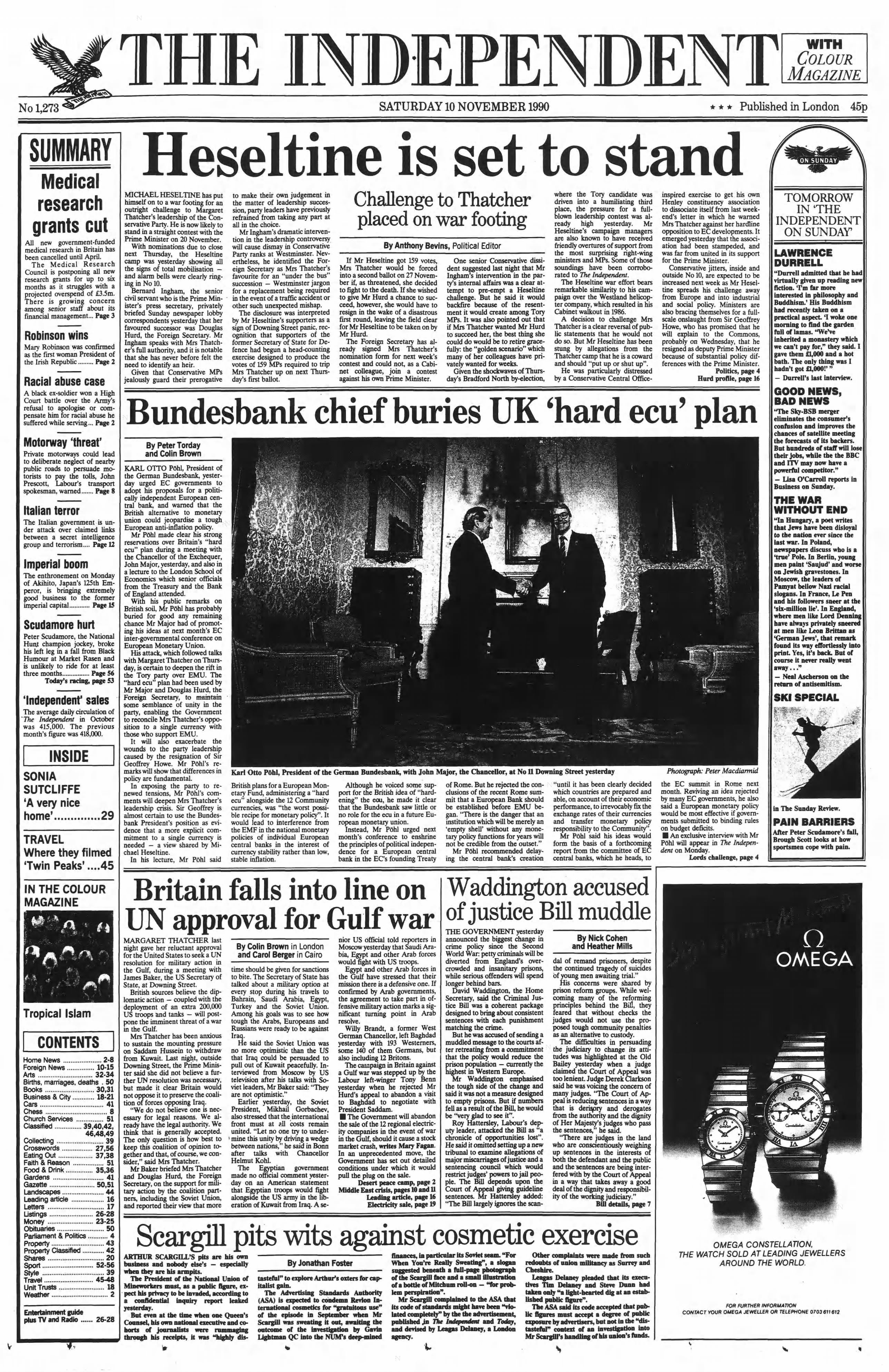 10 November 1990 – Heseltine challenges Thatcher