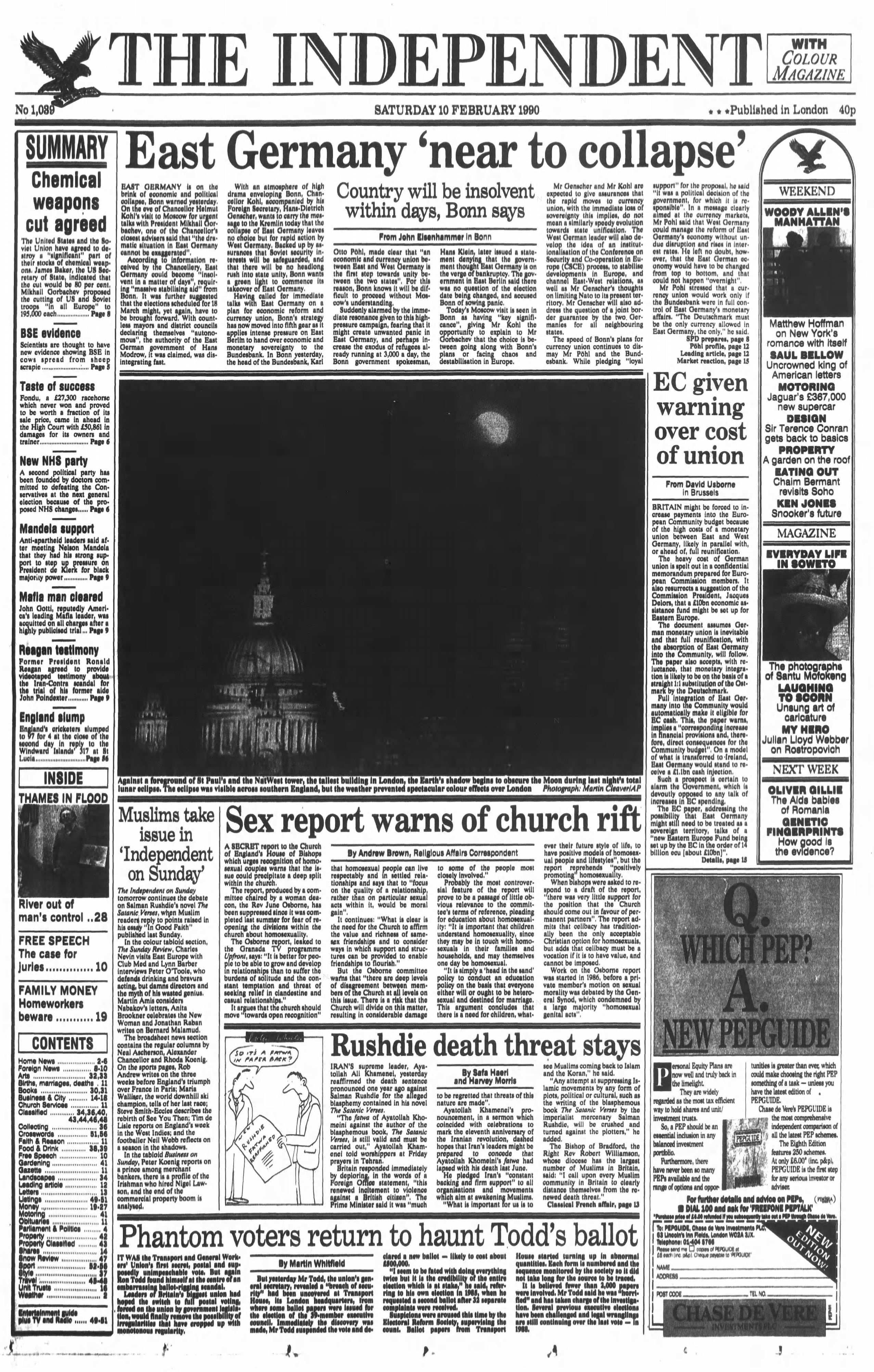 10 February 1990 – East Germany ‘near to collapse’