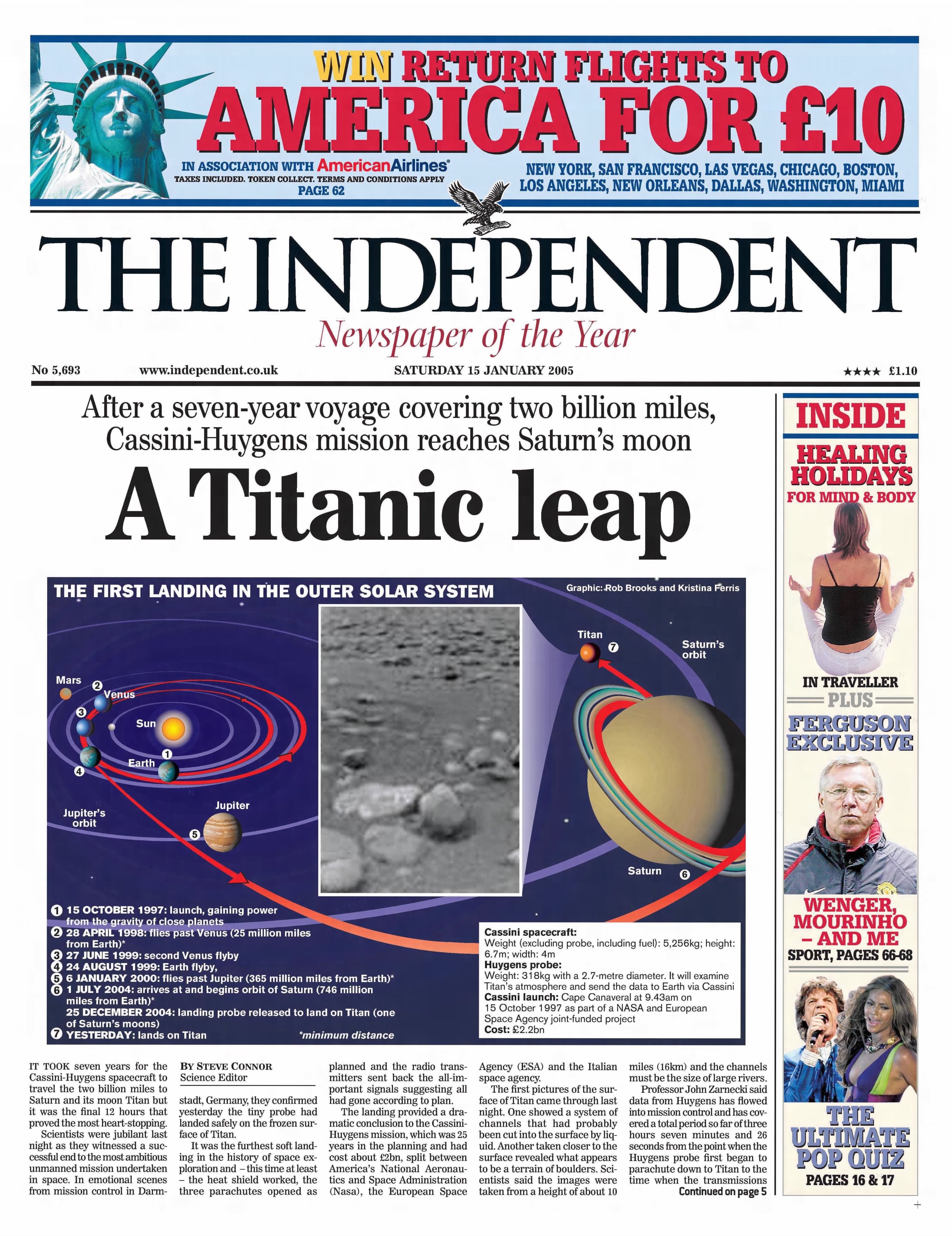 The world loses its Starman as tributes pour in following the death of David Bowie. The news continues to look star-ward as the Cassini spacecraft reaches Saturn after a seven-year, two-billion-mile journey, marking a landmark moment in space exploration. Drama unfolds closer to home when a passenger jet makes a crash-landing on the Hudson River, with all 155 people on board surviving in what later becomes known as the “Miracle on the Hudson”. In geopolitics, Romania bans the Communist Party and Moscow moves to recognise Lithuania’s independence as the Soviet Union continues to unravel. Meanwhile, the West edges closer to conflict in the Middle East after UN weapons inspectors discover Iraqi warheads. Within months, a US-led invasion is under way. All are revealed on the front pages of The Independent.