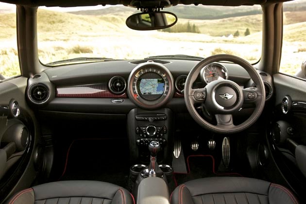 First, there is a new, lavishly equipped special edition called the Hampton. A lot of people worry that the Mini is becoming a German car that happens to be built in Britain, rather than a truly British product, but the introduction of the Hampton provides reassuring evidence that there is surely at least one person with a sense of humour at BMW's Munich headquarters, a person who understands the Mini's cheekily subversive British character and has a good working knowledge of Cockney rhyming slang. It really is all most encouraging. Once you get past the name, the Hampton package is a bit of a mixed bag. My test car, a Clubman estate, was fitted with some fantastic leather seats with contrasting piping, which were great to look at and great to sit on. Less succesful was a strange purpley tint that had been applied to much of the interior trim, and a maroon pinstripe pattern on the main dash panels. It's all a matter of taste, I suppose, but on the grounds that increased choice is almost always a good thing – the extension of the Mini range to include the Countryman being the obvious exception that proves the rule - I'd classify the introduction of the Hampton models as a plus.