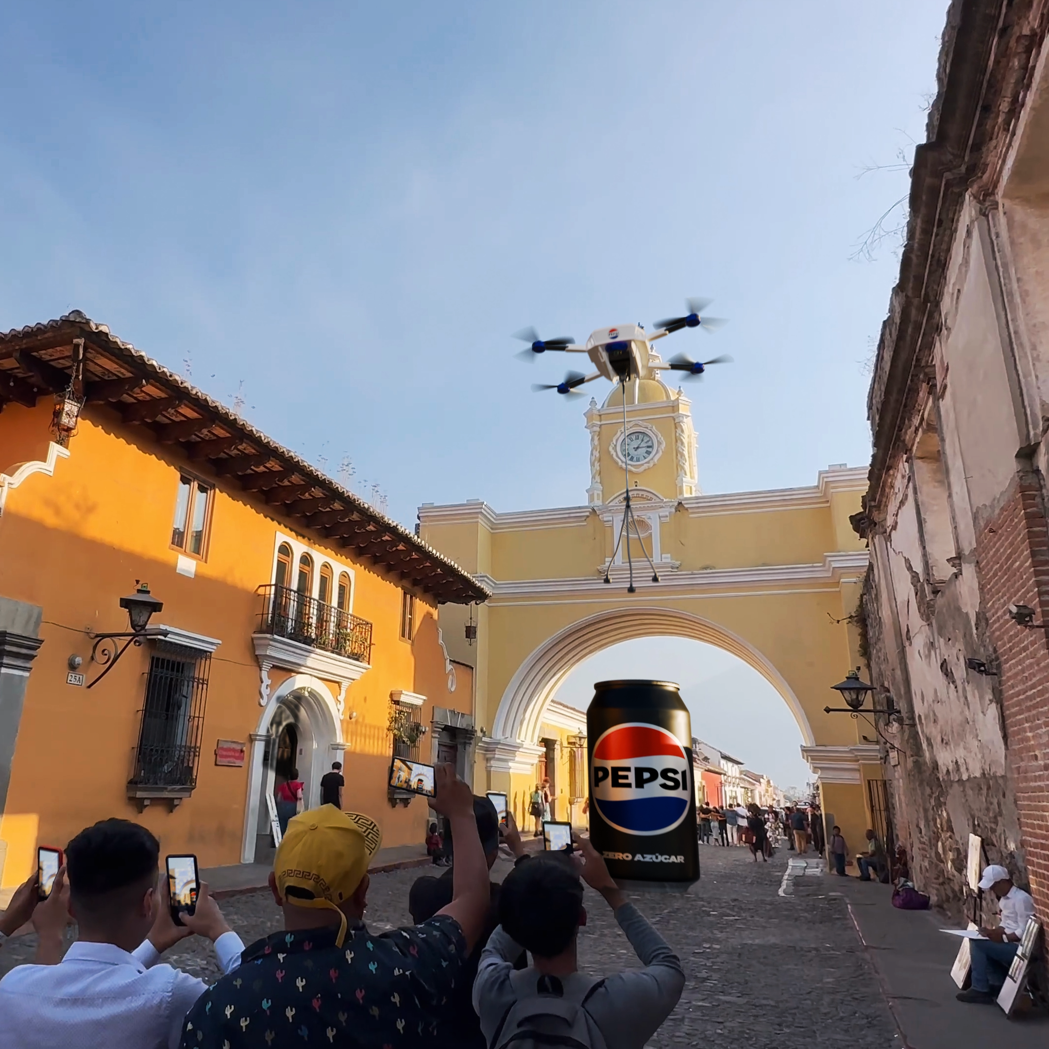 In London, a Pepsi digital installation appeared beside The O2 arena in a nod to the brand’s established support of international music acts. The view from the nearby cable cars saw an inflatable Pepsi can rise from the water, shortly followed by a light show of drones forming a pulsating dynamic display in the sky.