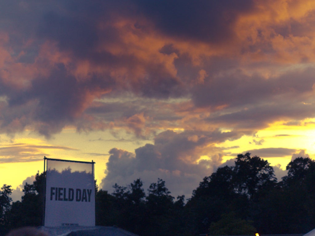 Terms and conditions: Closing date for competition is 5.30pm Friday 25 May 2012. Winners will be drawn at random and notified by 5.30pm on Monday 28 May 2012. Entrants must be aged 18 or over. There are 15 prizes. Each prize comprises two VIP tickets to Field Day. Each pair of VIP tickets will give access to the main festival site as well as the VIP area. Transport to and from the festival site is not included. The prize is non-transferable and there is no cash alternative. The editor’s decision is final. Only one entry per household. The line-up for Field Day is subject to change. For a full set of Field Day terms and conditions please visit www.fielddayfestivals.com. The Independent's usual terms and conditions apply.