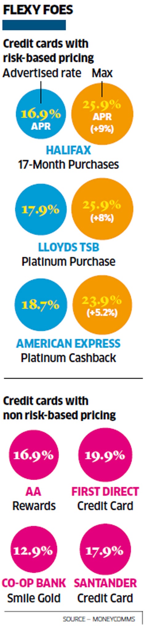 Financial information service Moneycomms, who conducted the research, found nine major lenders use the risk-based pricing model in credit cards.