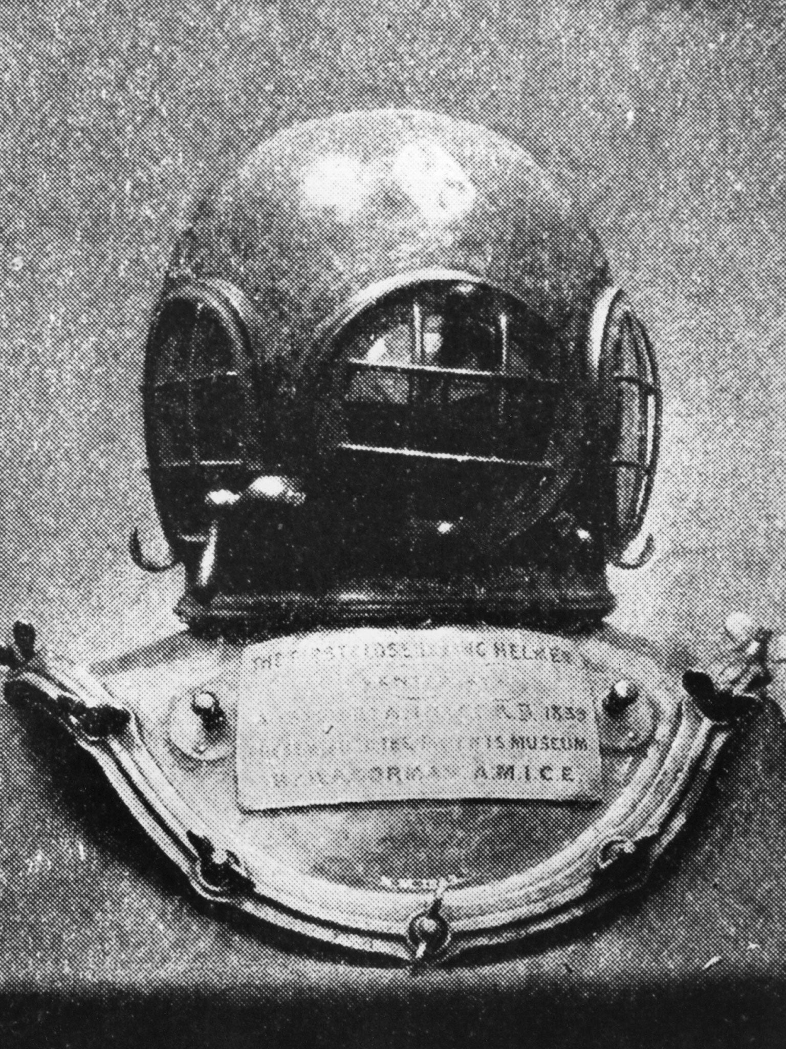 1819 Starts an engineering business in High Holborn and goes on to develop a diving helmet that is sealed to a watertight rubber suit