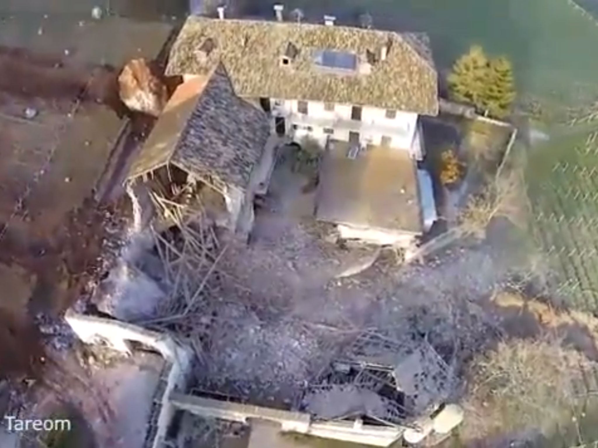 Approximately 4000 cubic metres of rock was dislodged from a cliff face and crashed through a barn and vineyards in Tramin in northern Italy on 21 January.