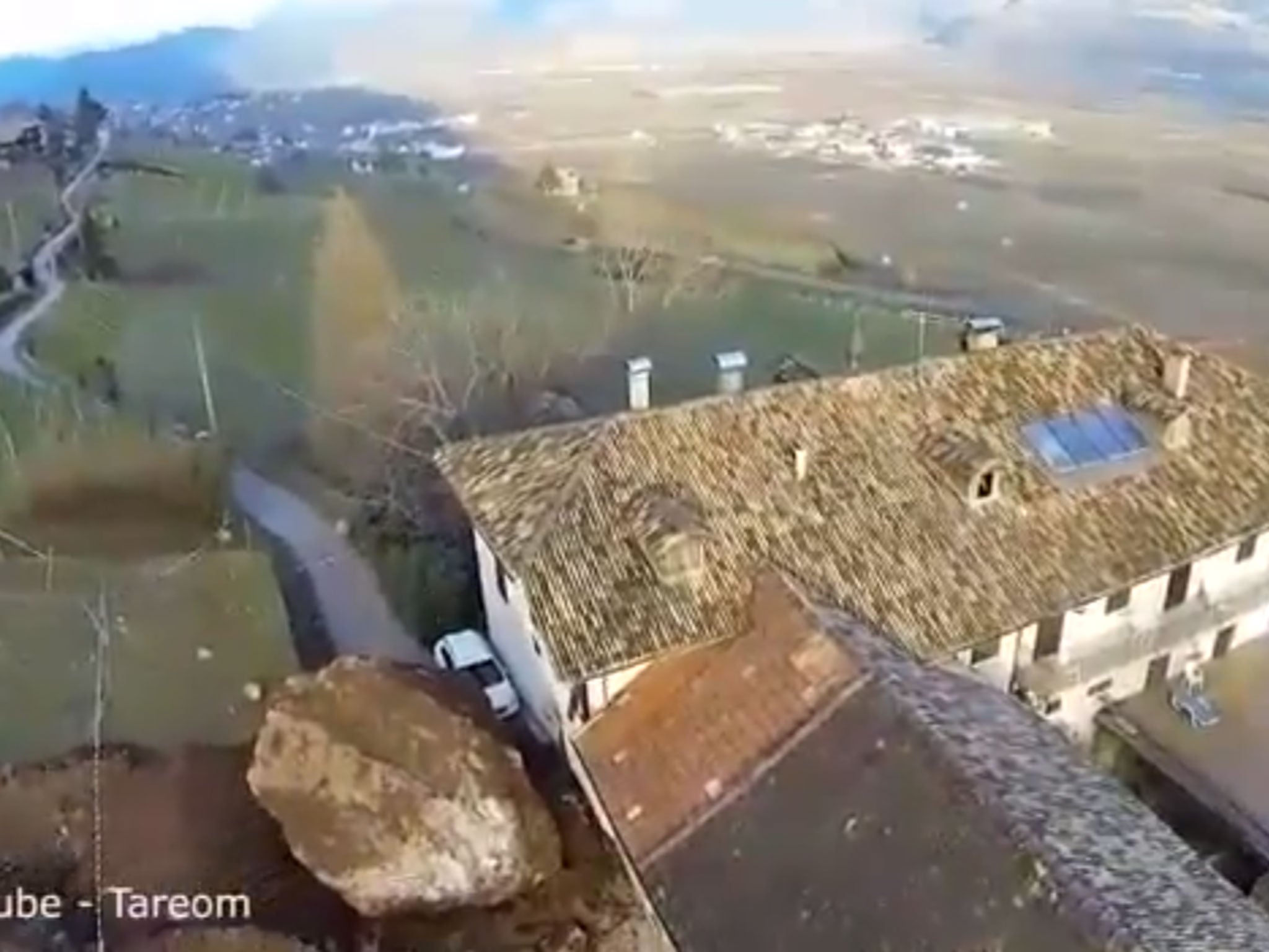 A 300-year-old Italian farm owned by an order of the Catholic Church is in ruins after a giant boulder dislodged in a rockfall rolled through the property causing millions of euros of damage.