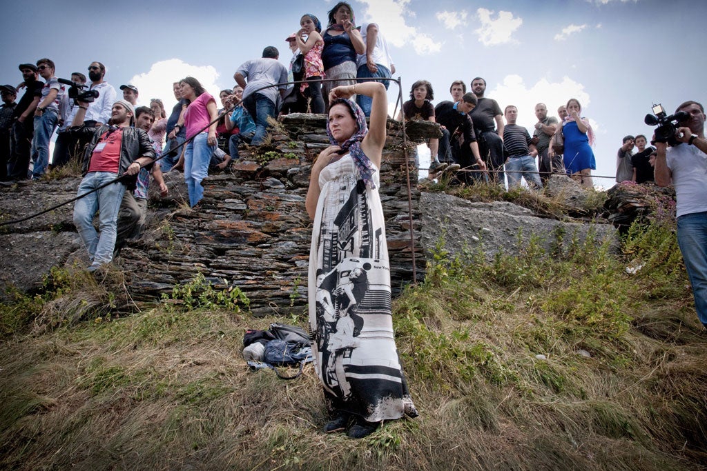 Campaigning in Georgia is not for the faint-hearted. At one point we climb for an hour up a sheer path to an 11th-century church perched on top of a mountain, where a religious festival is under way and hundreds of locals and visitors are jostling both to make it up to the church, and to get a glimpse of the visitor. Save for the bodyguards and the motorcade of black limousines waiting below, the scene could be straight from the Middle Ages. Atop the hill, candles are lit, bells rung by hand, goats are being skinned and stewed in giant pots, and a strong-man contest is under way involving the lifting of giant rocks. Ivanishvili, who hardly breaks a sweat during the climb in the summer sun, stops to hear the concerns and complaints of ordinary Georgians. Mainly they moan about a lack of jobs and investment. "We don't know much about him, but we are willing to give him a try. He can't be worse than the others," says 82-year-old Eduard, a local villager.