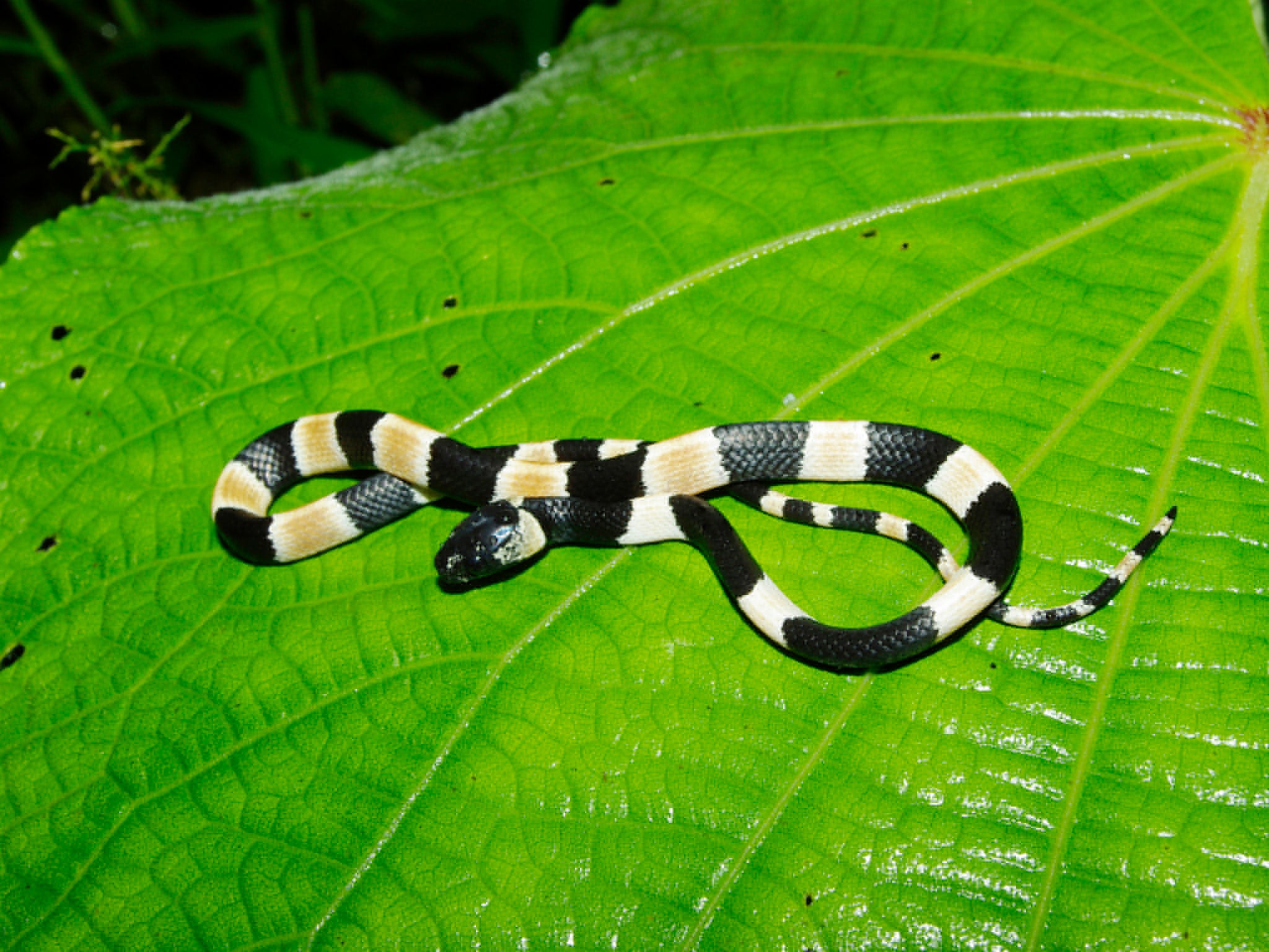 The unusual name for this species derives from the Spanish phrase ‘No a la mina’, or ‘No to the mine’, referring to the harmful ore mining that is destroying the creature’s habitat in the Serranía de Tabasará mountain range. Apart from the snails and slugs it hunts at night, the snake noalamina is harmless, mimicking the dark and light stripes of the venomous coral snake to scare off predators.