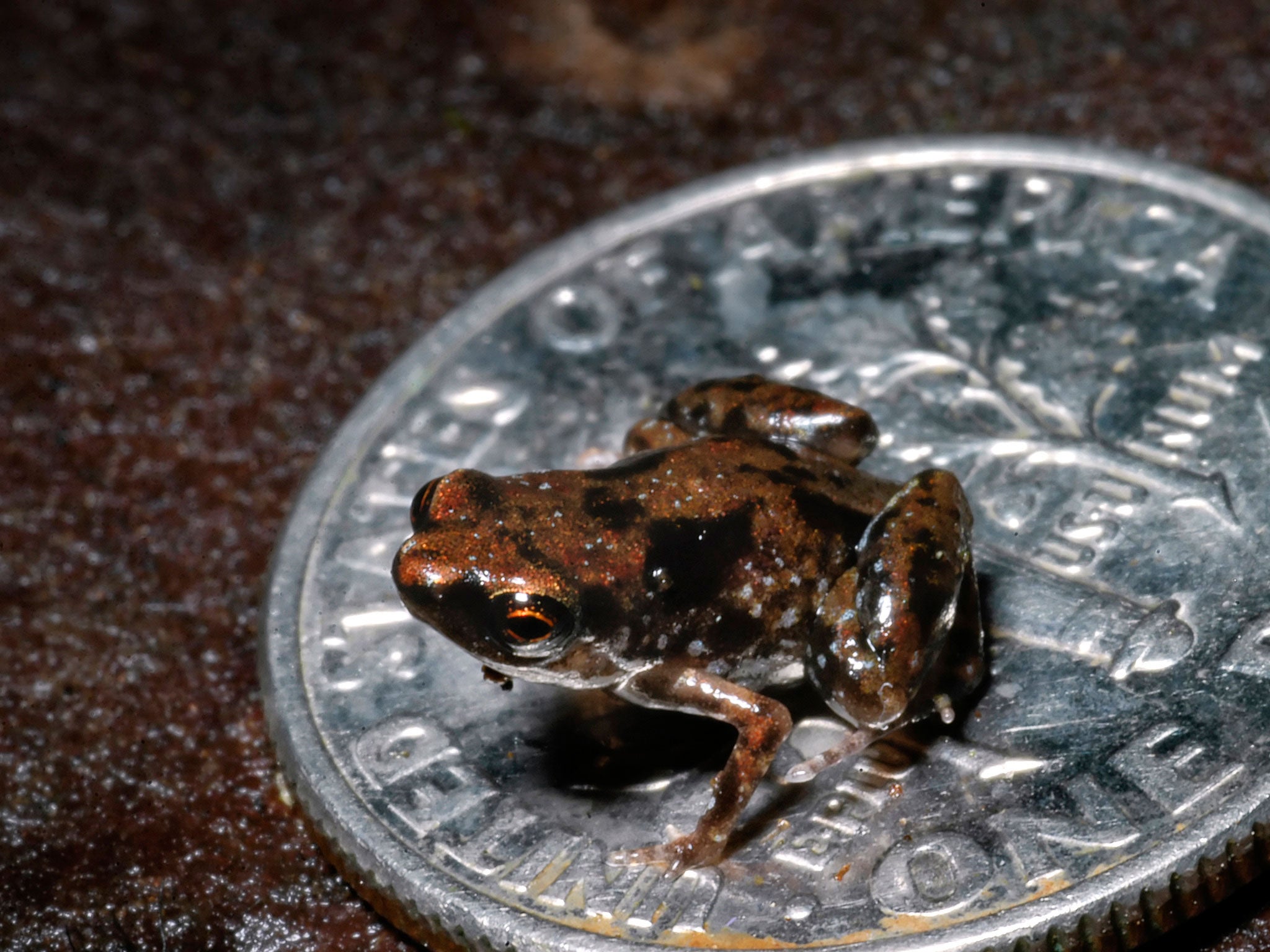 With an average size of only 7.7 millimeters across, this frog is the smallest living vertebrate – that is, an animal with a spine. Like other ultra-small frogs, the paedophyrne amanuensis makes it home in the carpet of fallen leaves found in tropical rainforests. Discovered in Papua New Guinea this new species can leap more than 30 times its body length.