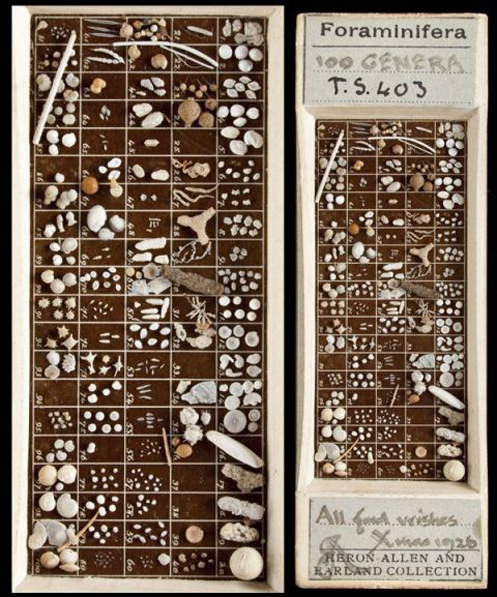 The two amateur collectors spent much of their spare time collaborating closely and even shared rooms at the Natural History Museum in London where they prepared joint scientific papers and exquisite microscope slides packed full of formanifera shells intricately arranged in mesmerizing displays.