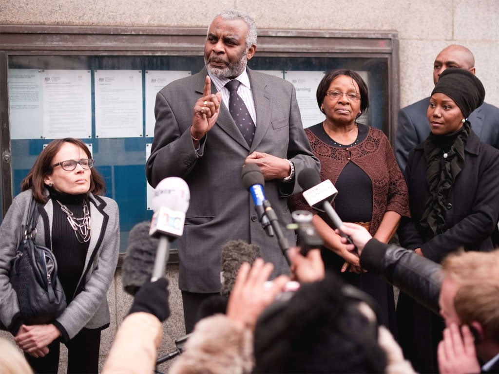 Outside court, Stephen Lawrence's father, Neville, called on the two men to turn in others. He told a crowd of 200 people: "One of my greatest hopes is that these people now realise they have been found out, and are going to go and lie down in their beds and think that they were the whole ones who were responsible for the death of my son. And they are going to give up the rest of the people so I come here in a year's time and talk to you people again."