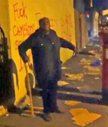 In one of many acts of humanity and bravery by Londoners on a night in which a vile minority sought to rule, onlookers gathered over Regine to protect her from missiles as she placed on an ambulance stretcher. She said: "Two youngsters with drinks in their hands running away from the police ran into me. I think I have a broken hip – that is the last thing I want now. I just came out to see what was happening. The whole thing is awful."