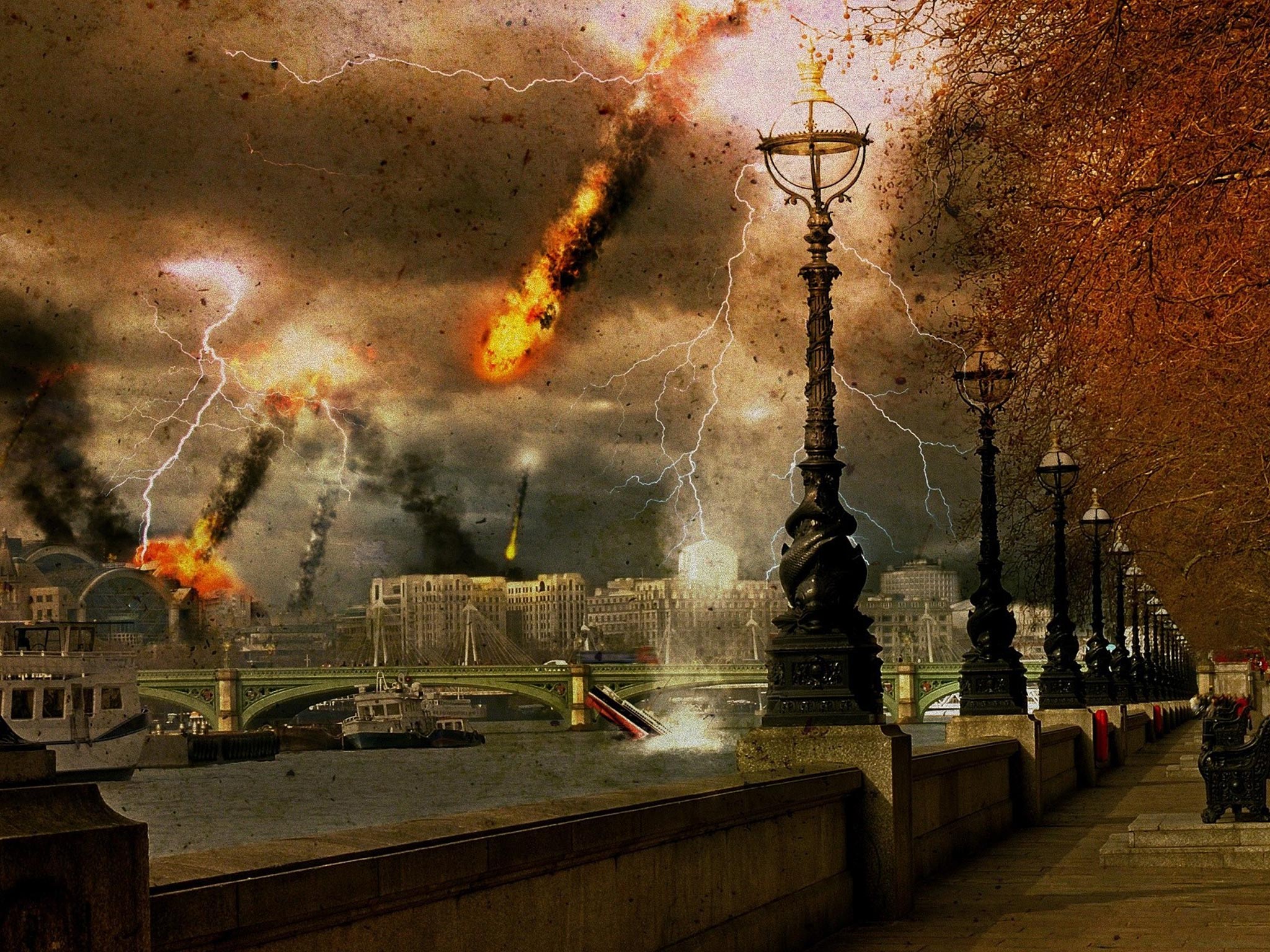 The five stunning images, which were commissioned by TV channel 'Yesterday', shows the Houses of Parliament amid devastating floods, Trafalgar Square as an ice age takes hold, the Angel of the North following an earthquake, London during a meteorite shower and Edinburgh Castle being hit by a tornado.