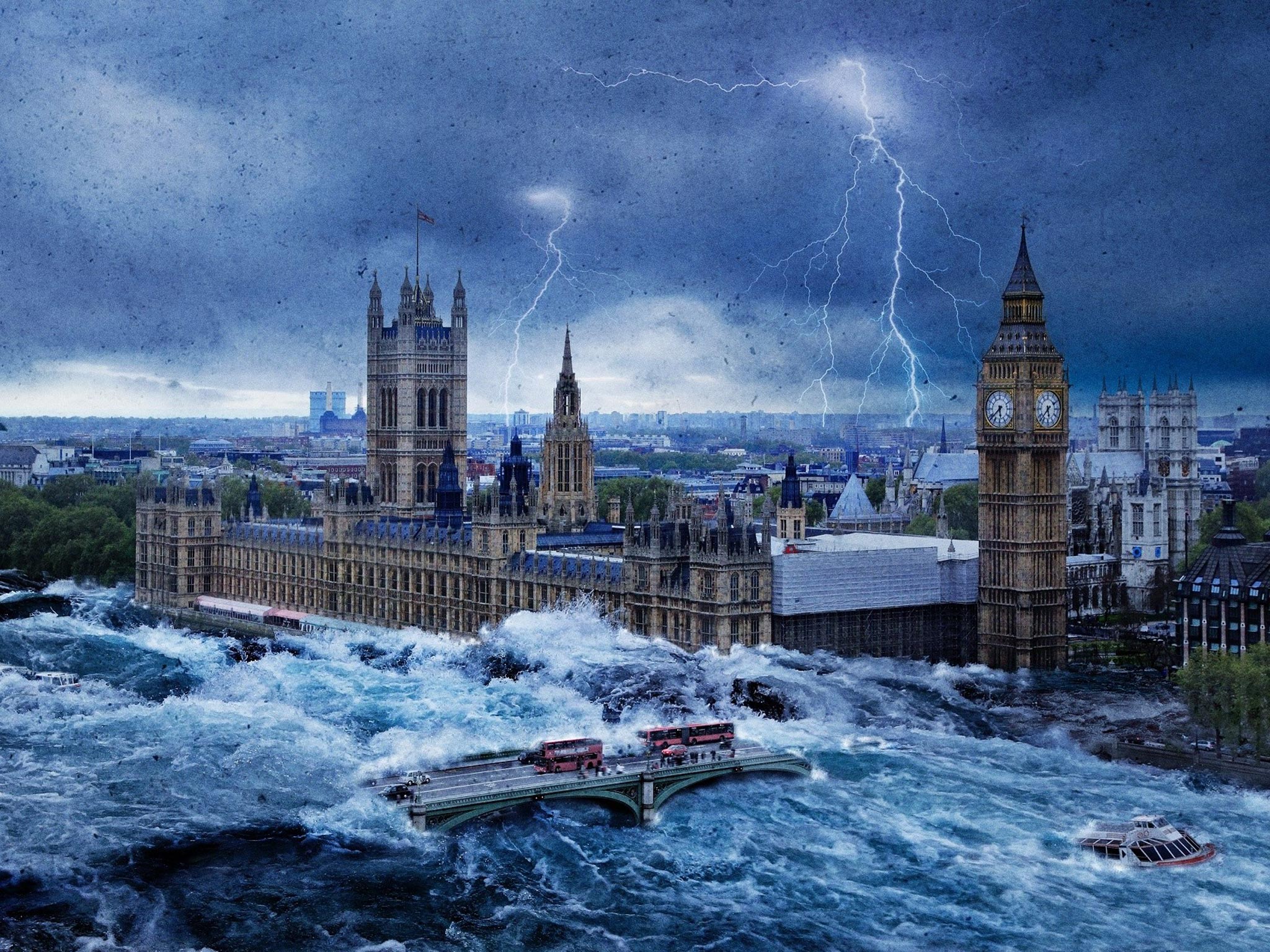 The figures were relased to coincide with remarkable images created by a Canadian digital artist depicting Britain in the grip of a series of catastrophic natural disasters.