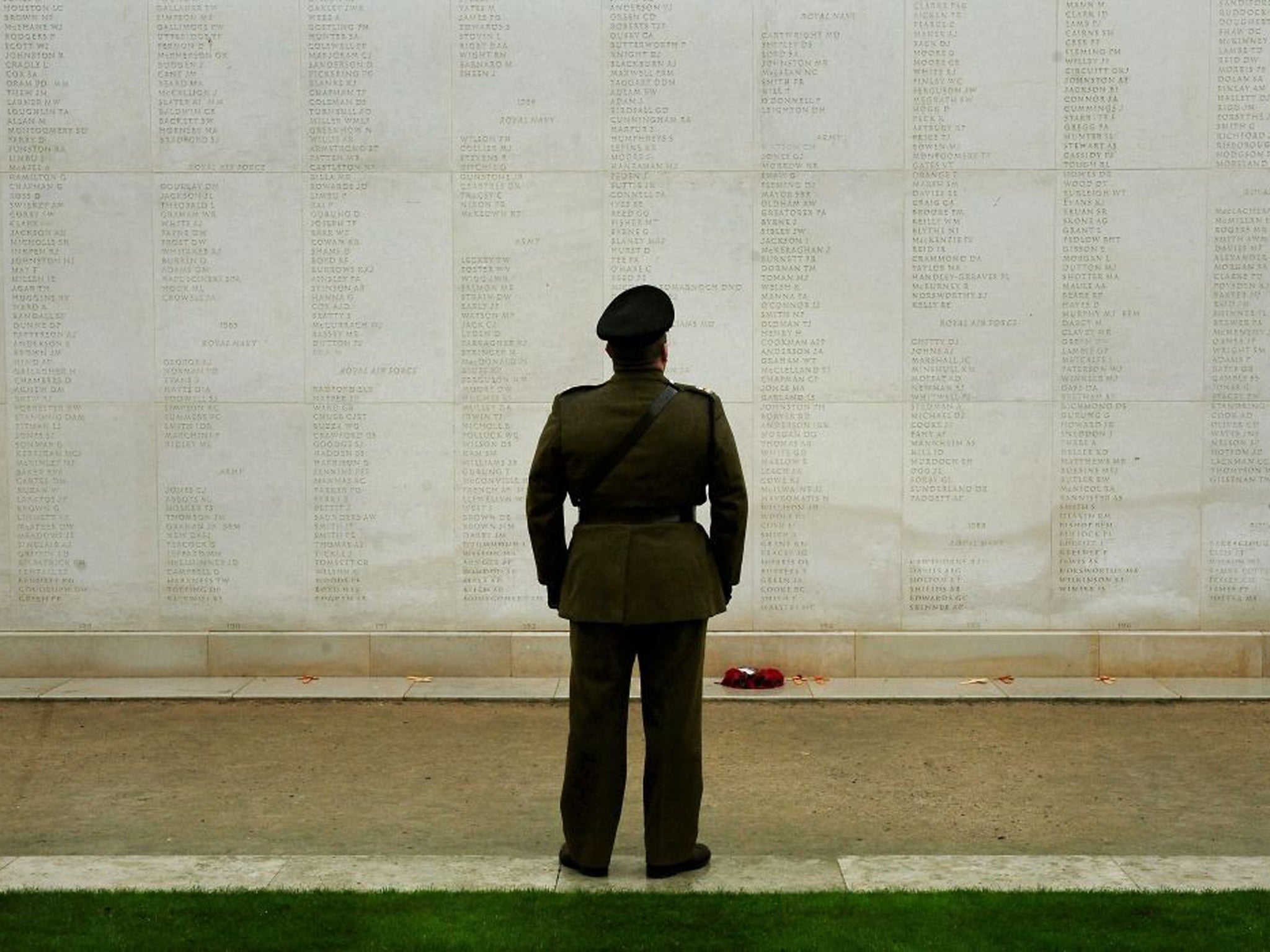 The memorial, which hosted the service in pouring rain, bears the name of more than 16,000 fallen service personnel.