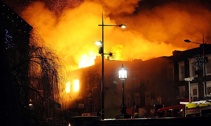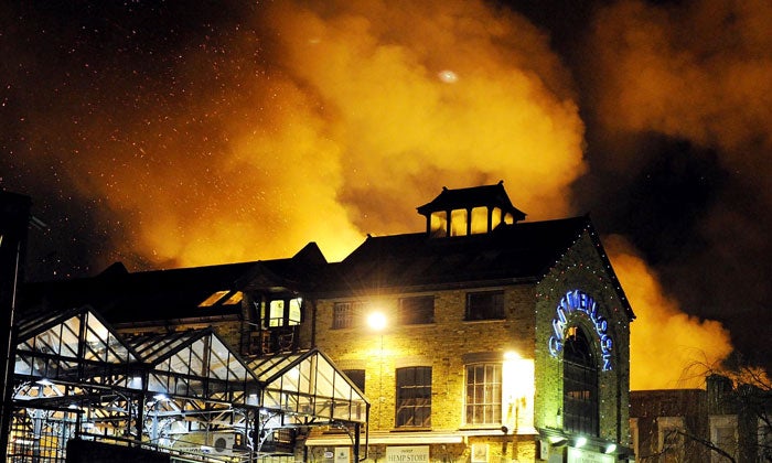 The worst-hit areas were storage properties for the Canal Market and the famous pub the Hawley Arms, which was formerly popular with Hell's Angels but more recently has transformed itself into one of the area's trendiest nightspots.