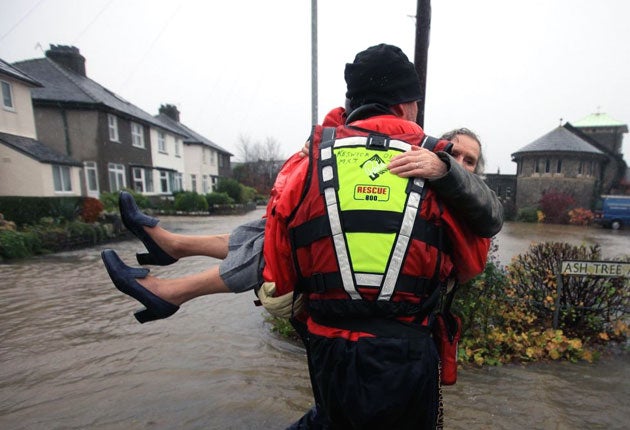 In some of the most dramatic scenes of flooding ever seen in Britain, three RAF helicopters, lifeboats and mountain rescue teams were deployed in the rescue effort as the town bore the brunt of the torrential rain and winds which swept across northern England and southern Scotland.