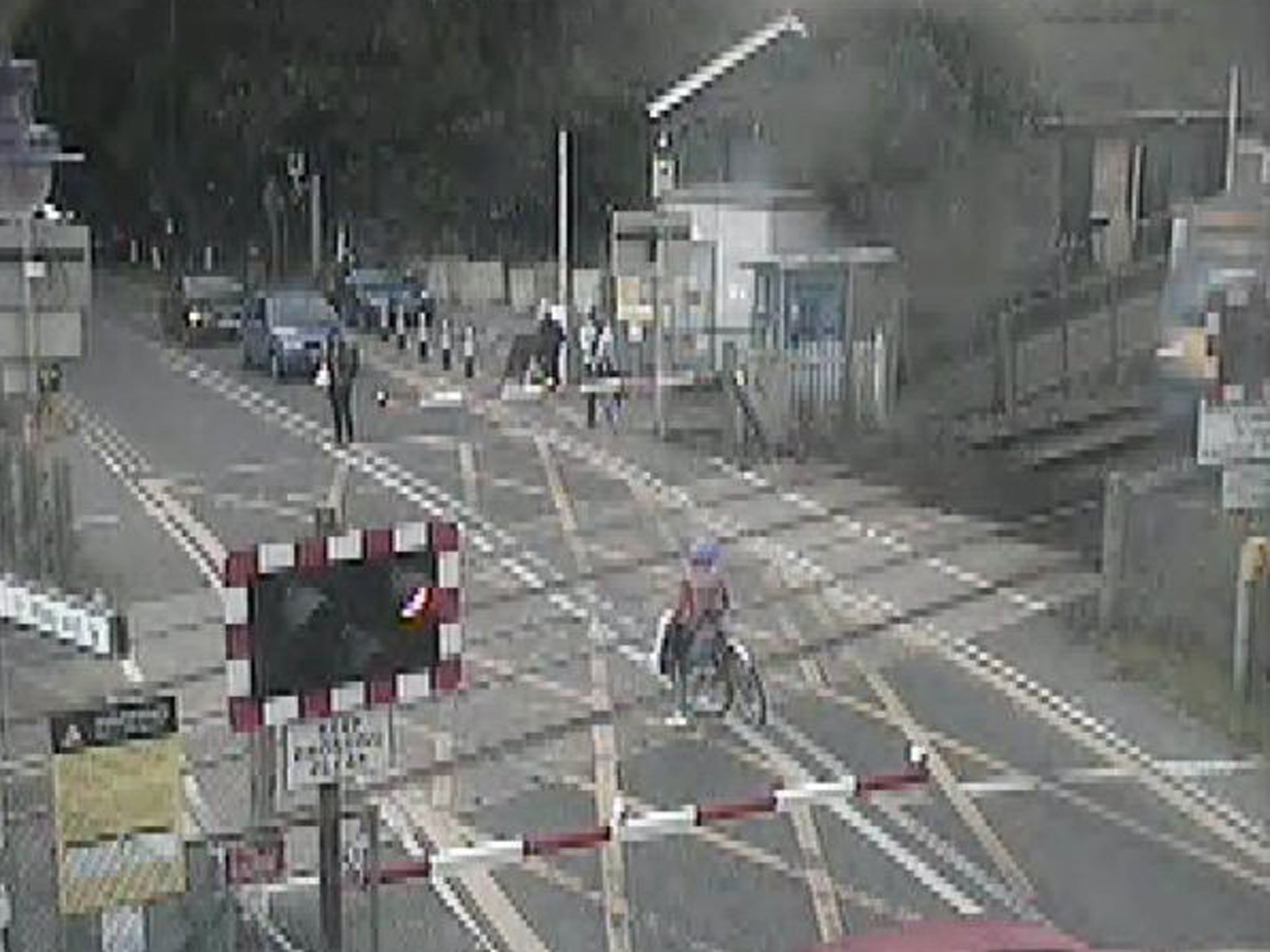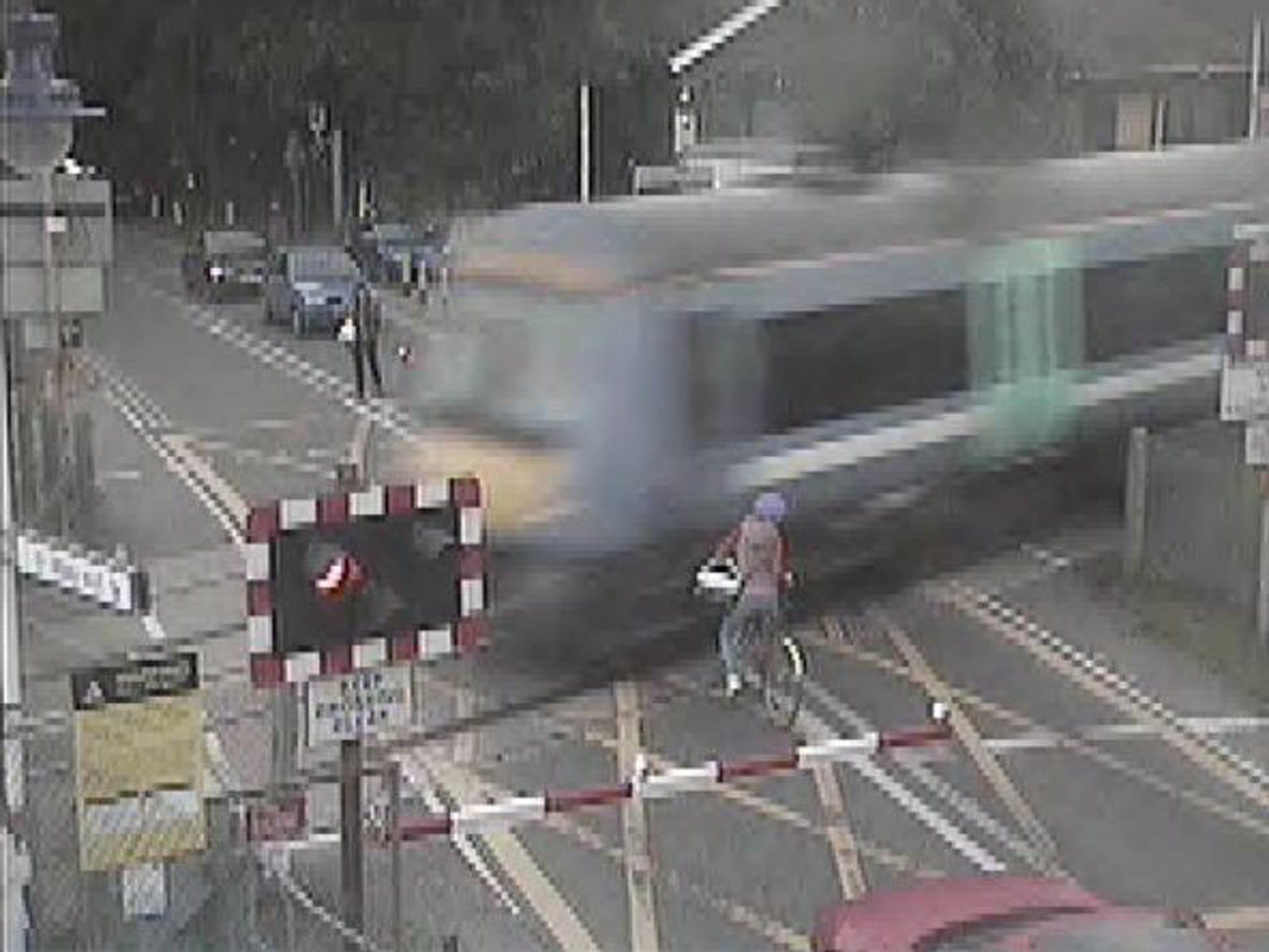 Footage of the incident, which happened at the Waterbeach crossing in Cambridgeshire, has been released by British Transport Police in an attempt to identify the woman and highlight the dangers of misusing level crossings.