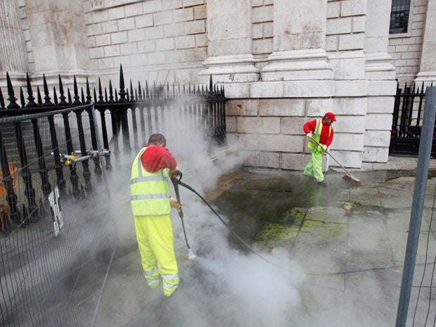 St Paul's later issued a statement saying: "The police did not ask for permission from us regarding any aspect of the action taken last night, but we were clear that we would not stand in the way of the legal process or prevent the police from taking the steps they needed to deal with the situation in an orderly and peaceful manner."